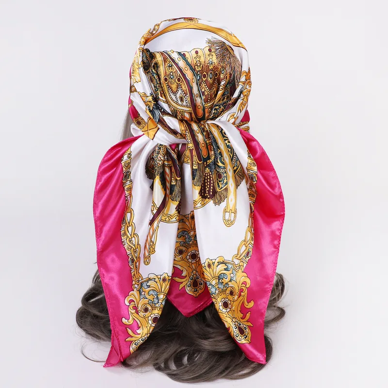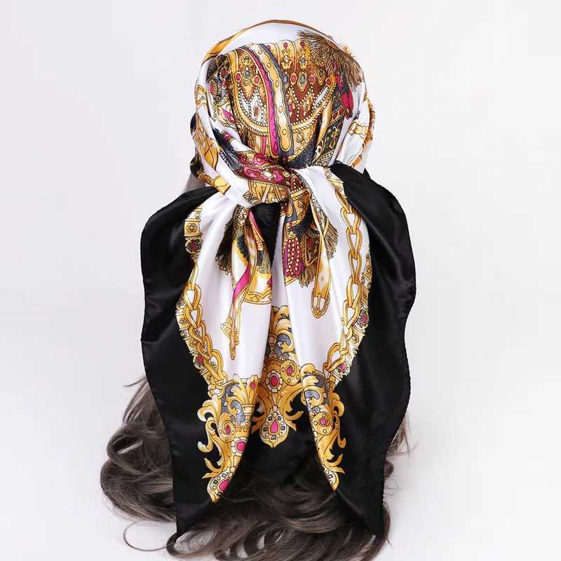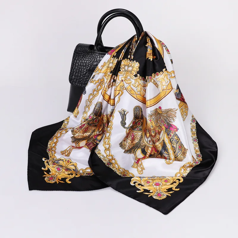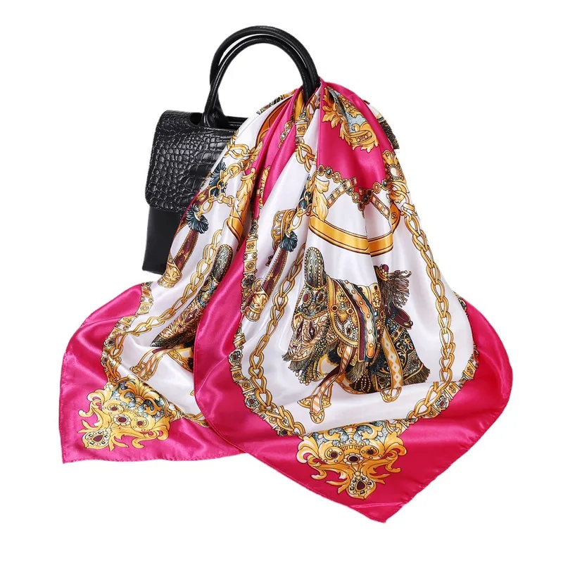 Wholesale women's lady monogram satin printing silk scarf