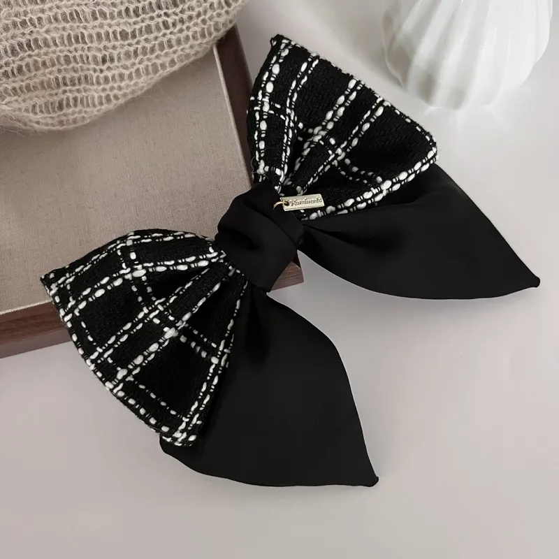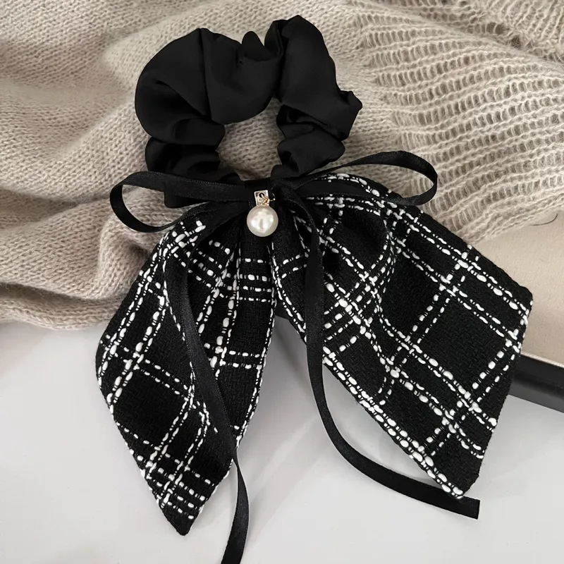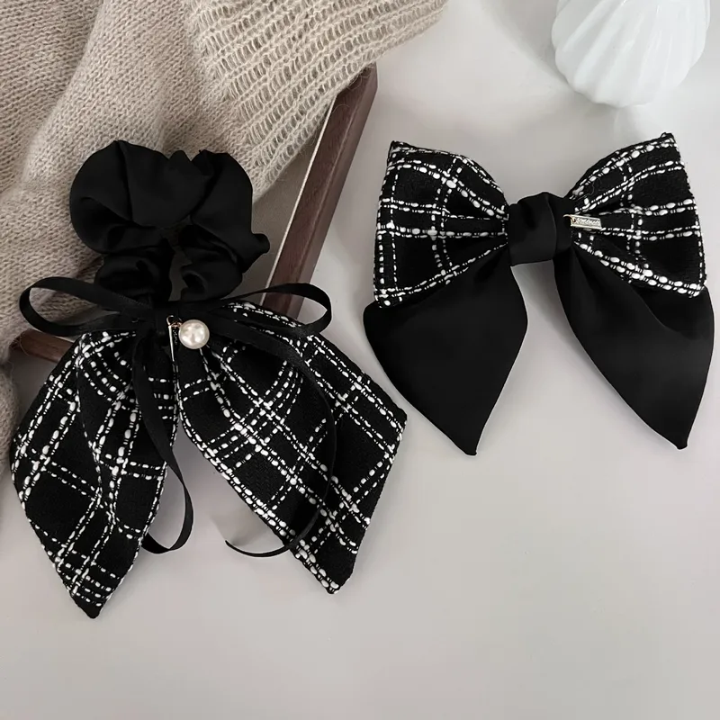 Women's Lady Plaid Cloth Bowknot Hair Tie