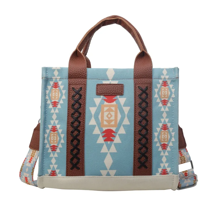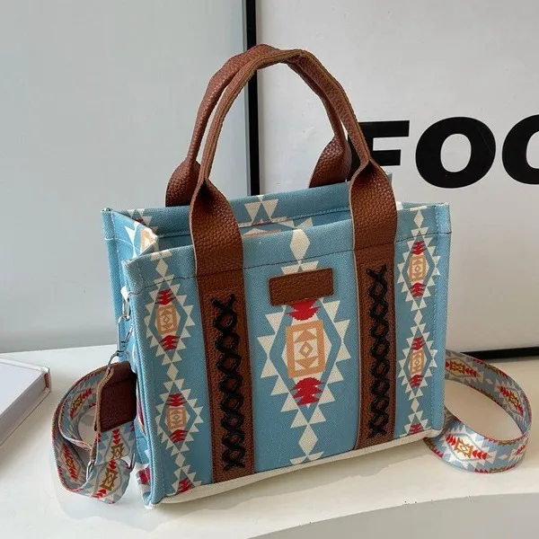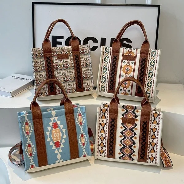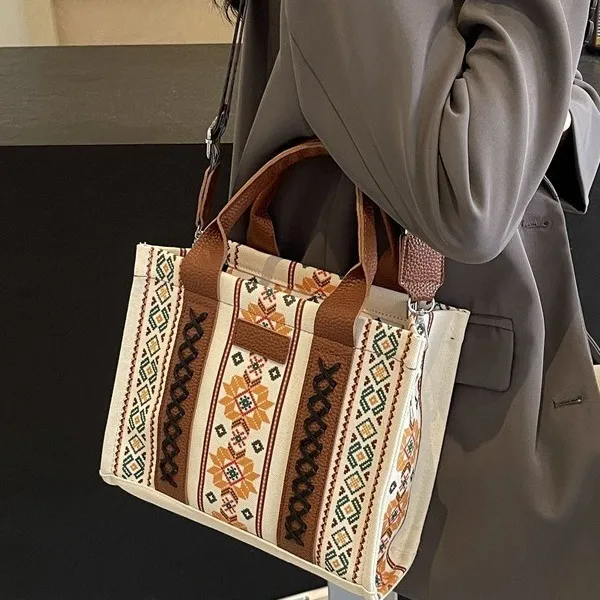 Wholesale Women's Large Canvas Flower Elegant Vintage Style Streetwear Square Zipper Tote Bag