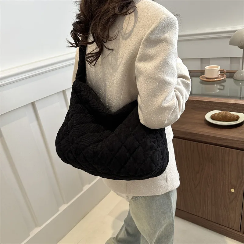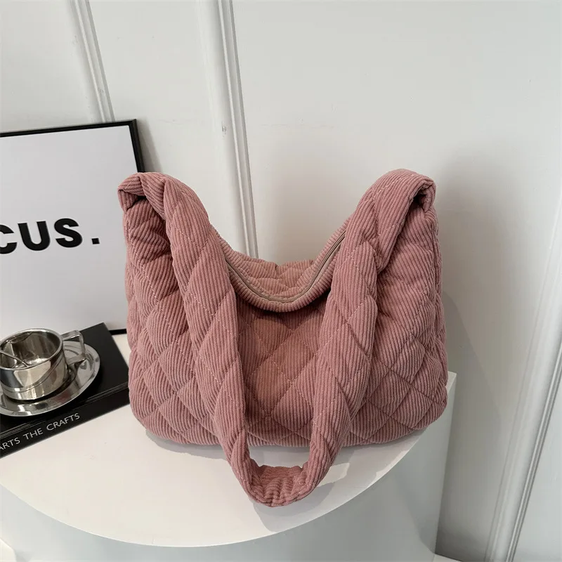 Wholesale Women's Large Cotton Lingge Streetwear Square Zipper Shoulder Bag