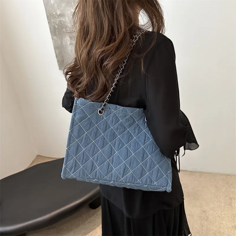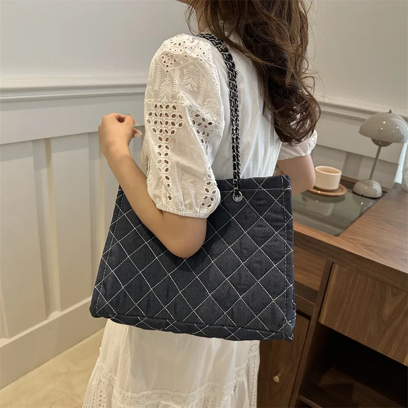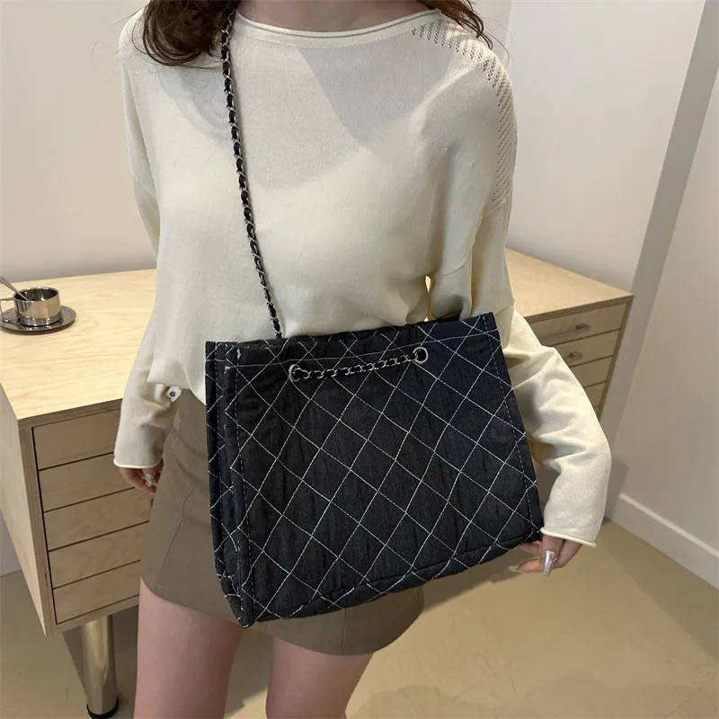 Wholesale Women's Medium Canvas Lingge Streetwear Square Open Shoulder Bag
