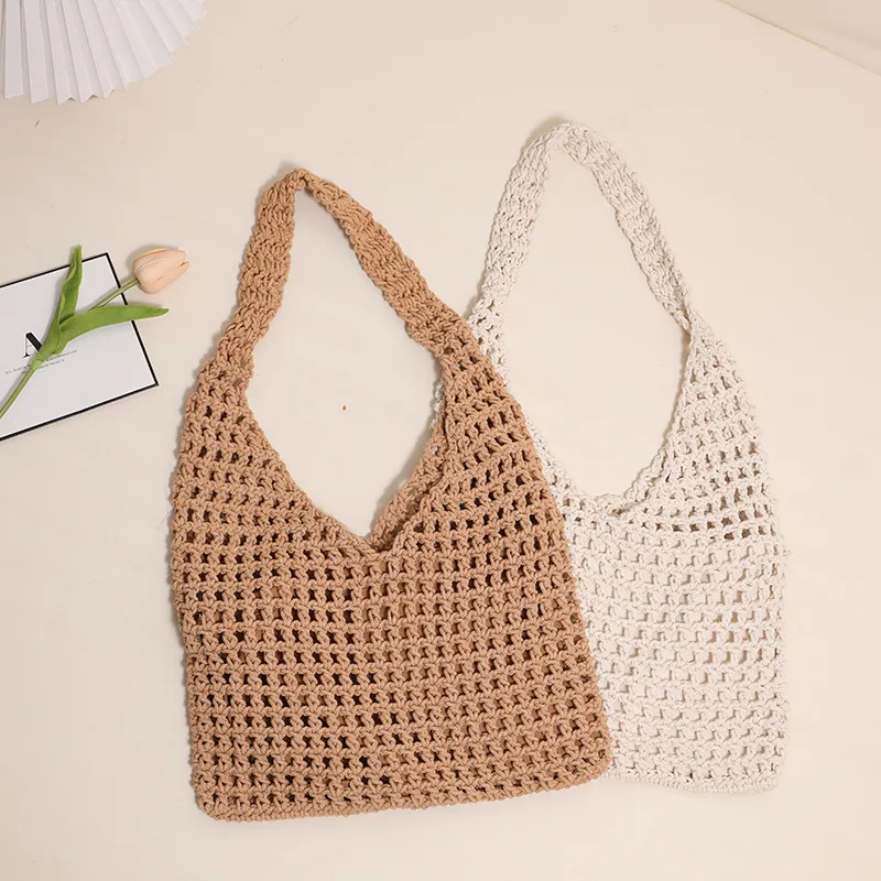 Wholesale Women's Medium Cotton Solid Color Elegant Streetwear Weave Square String Straw Bag