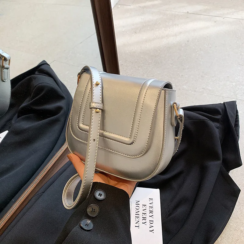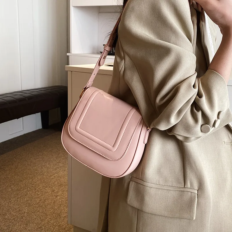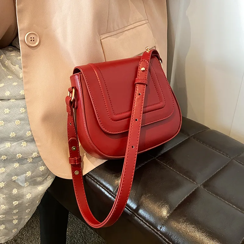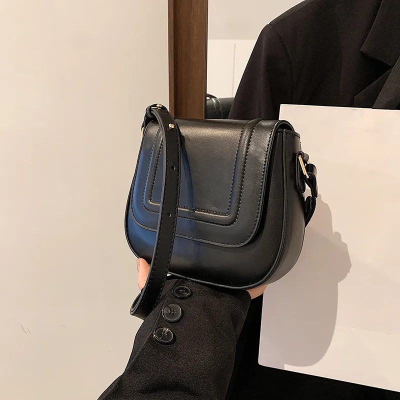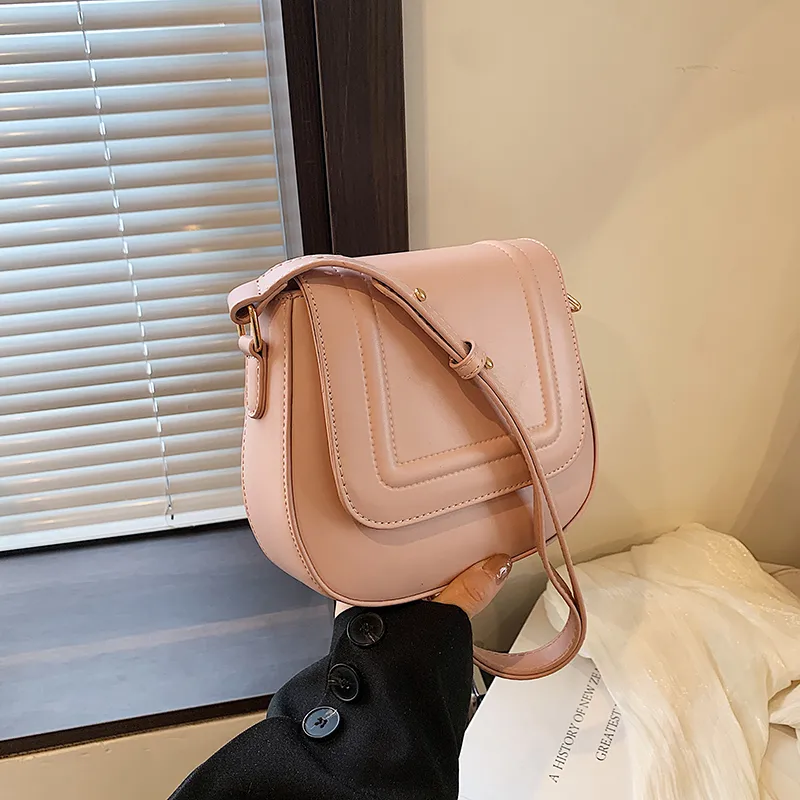 Wholesale Women's Medium Pu Leather Solid Color Classic Style Square Magnetic Buckle Saddle Bag