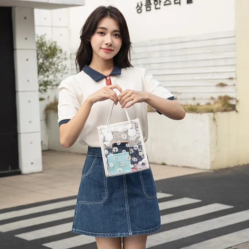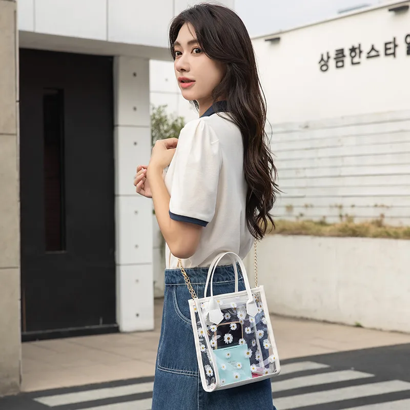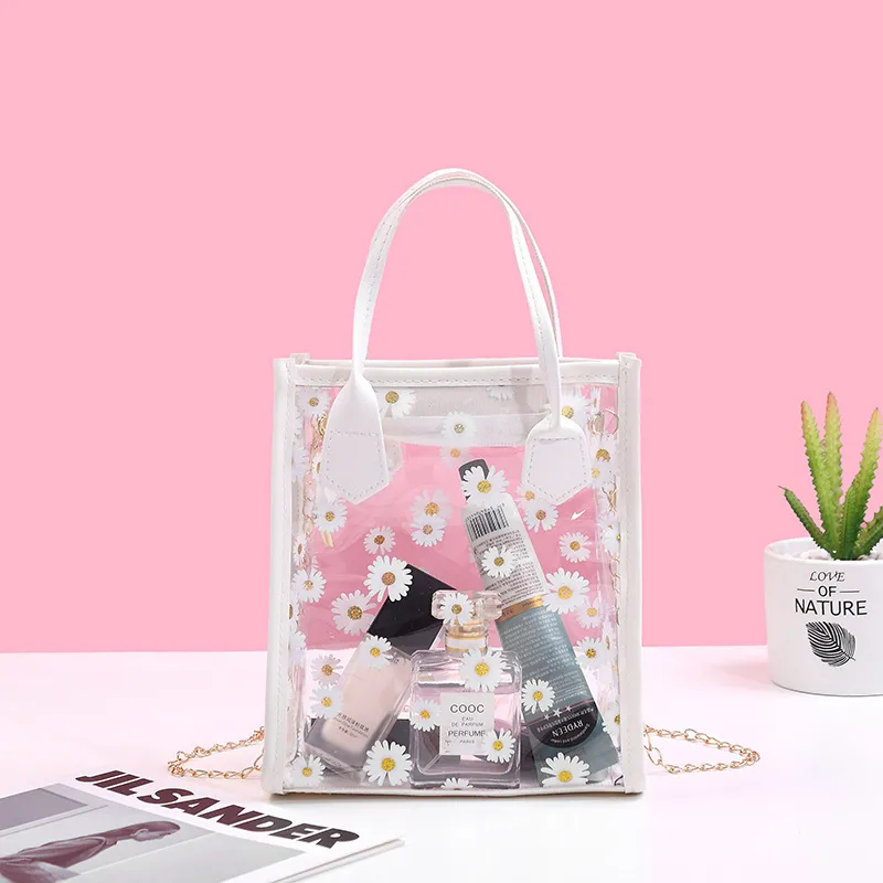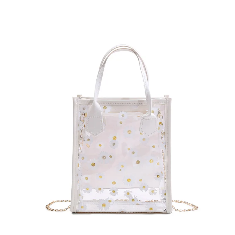 Wholesale Women's Medium PVC Ditsy Floral Basic Classic Style Square Zipper Handbag
