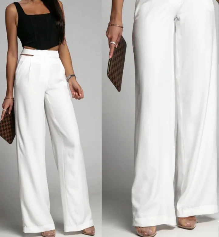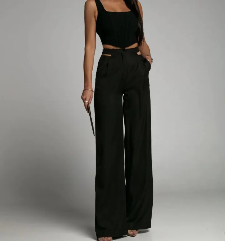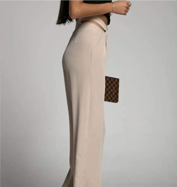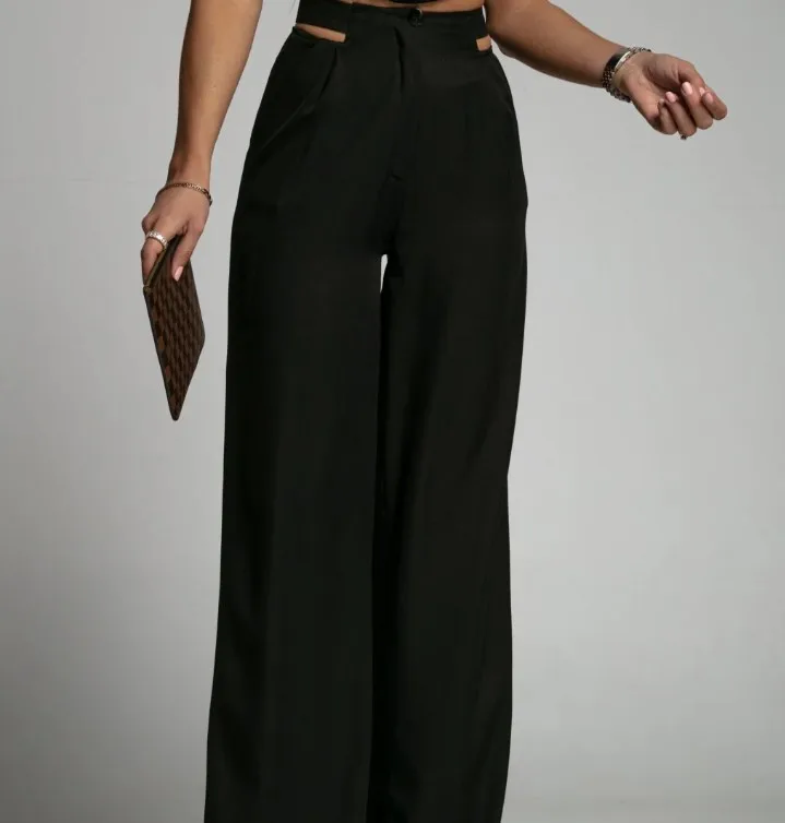 Women's Office Business Solid Color Full Length Hollow Out Dress Pants