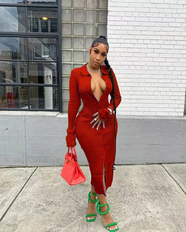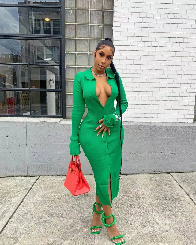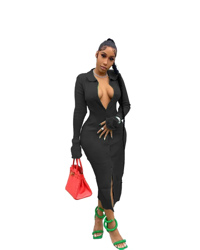 Wholesale Women's One-Step Skirt Casual Elegant Streetwear Shirt Collar Double Button Long Sleeve Solid Color Midi Dress Holiday Banquet Selfie