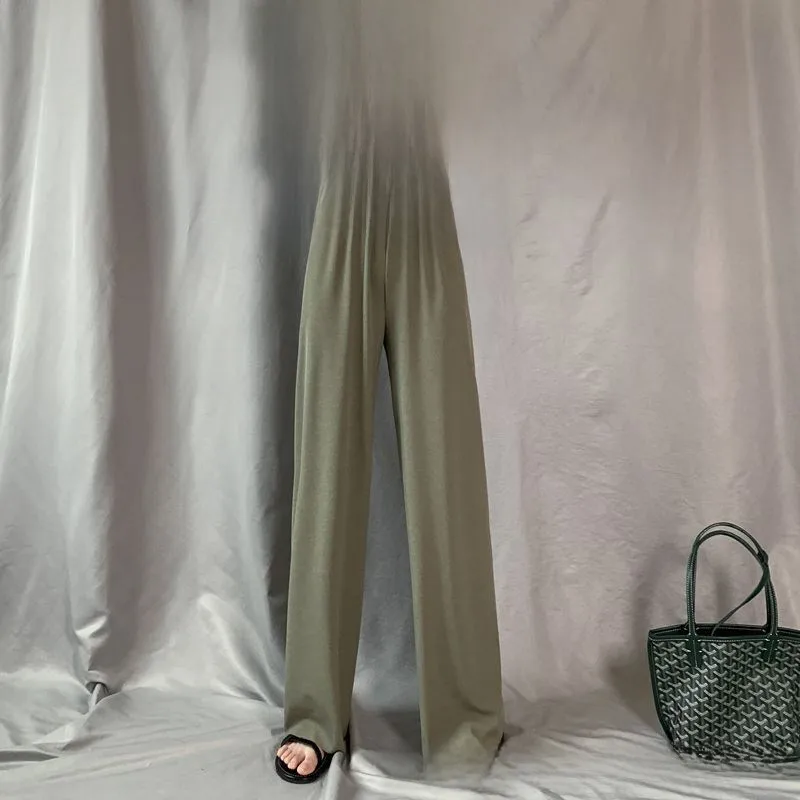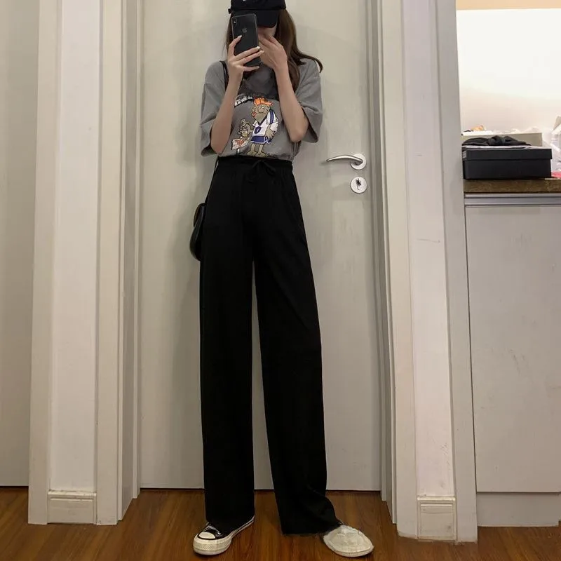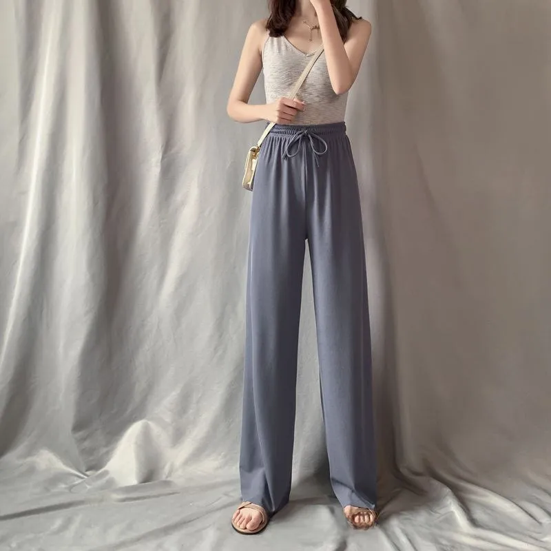 Women's Pants Summer Women's Foreign Trade Ice Silk Wide Leg Pants New Style Thin Pants For Small Men Vertical Straight High Waist Casual Mop Pants