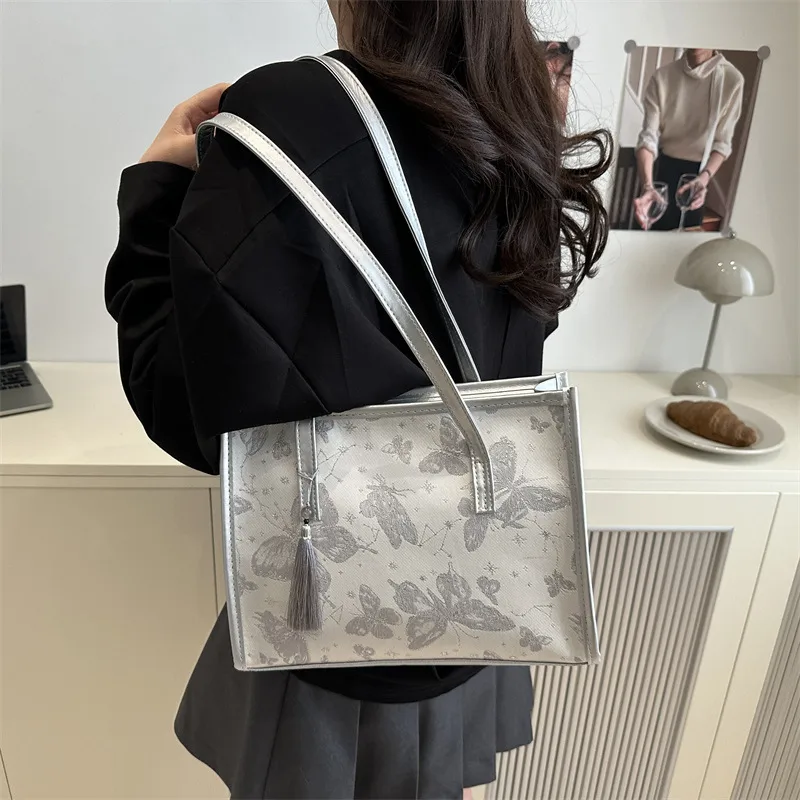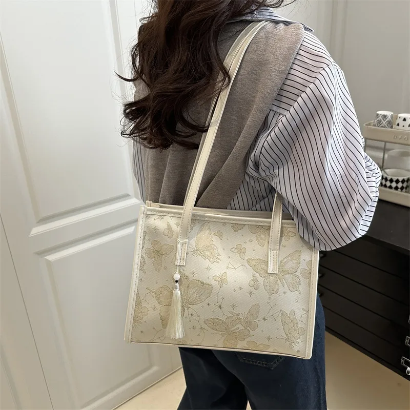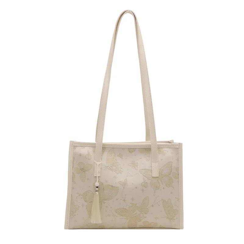 Women's PU Butterfly Elegant Sewing Thread Bucket Zipper Tote Bag