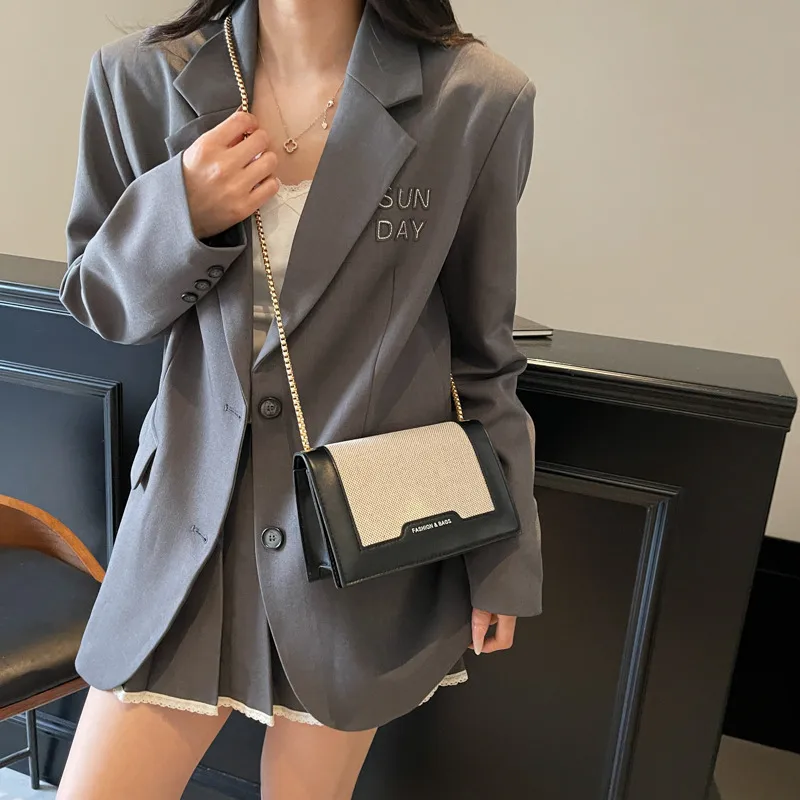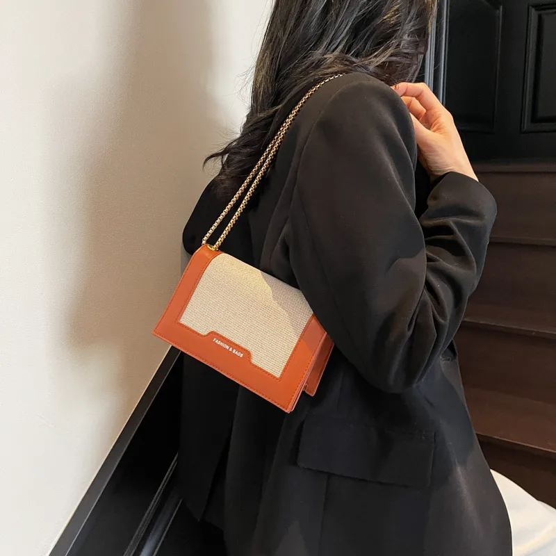 Wholesale Women's Pu Leather Color Block Streetwear Square Magnetic Buckle Square Bag