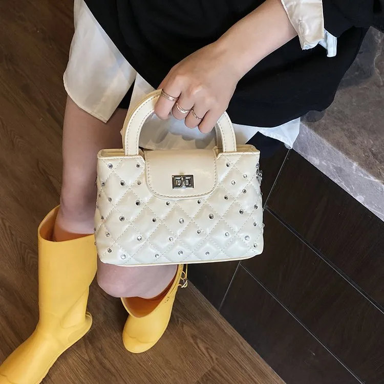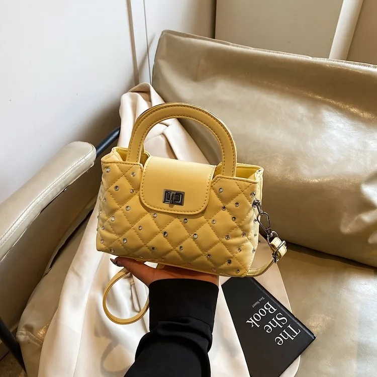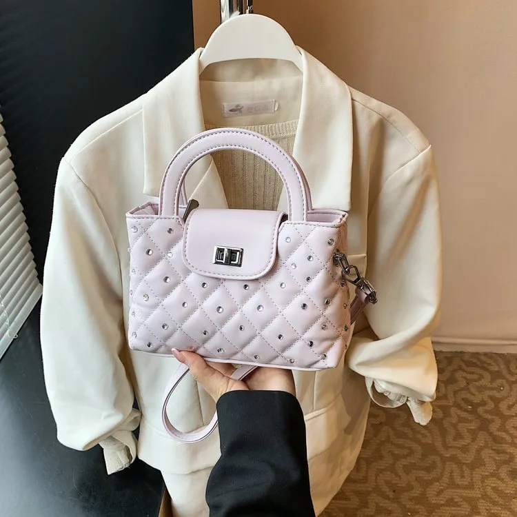 Wholesale Women's Pu Leather Solid Color Lingge Elegant Streetwear Square Lock clasp Shoulder Bag