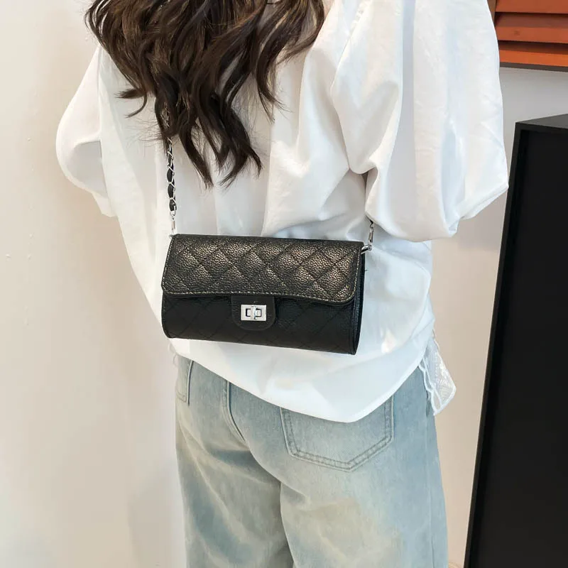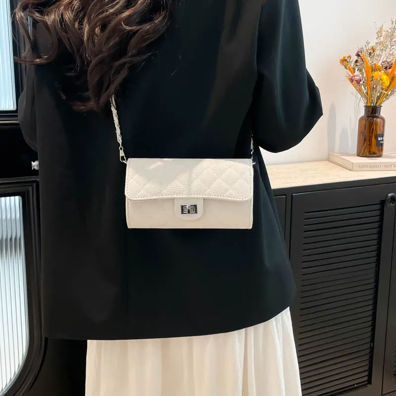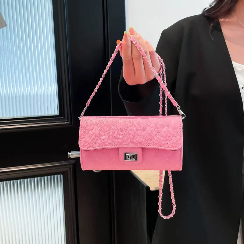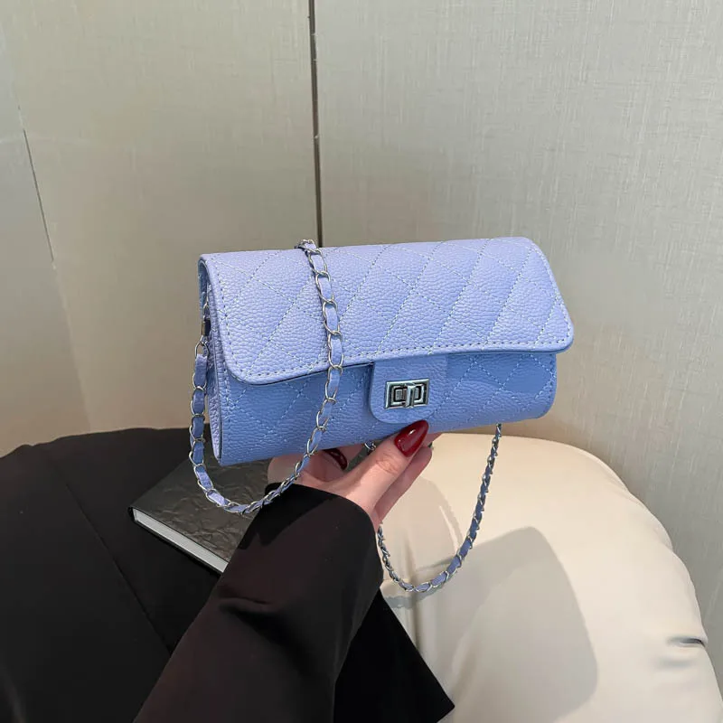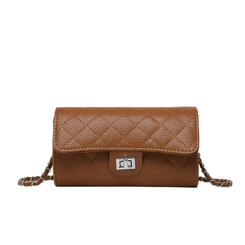 Wholesale Women's Pu Leather Solid Color Lingge Streetwear Sewing Thread Square Lock clasp Shoulder Bag