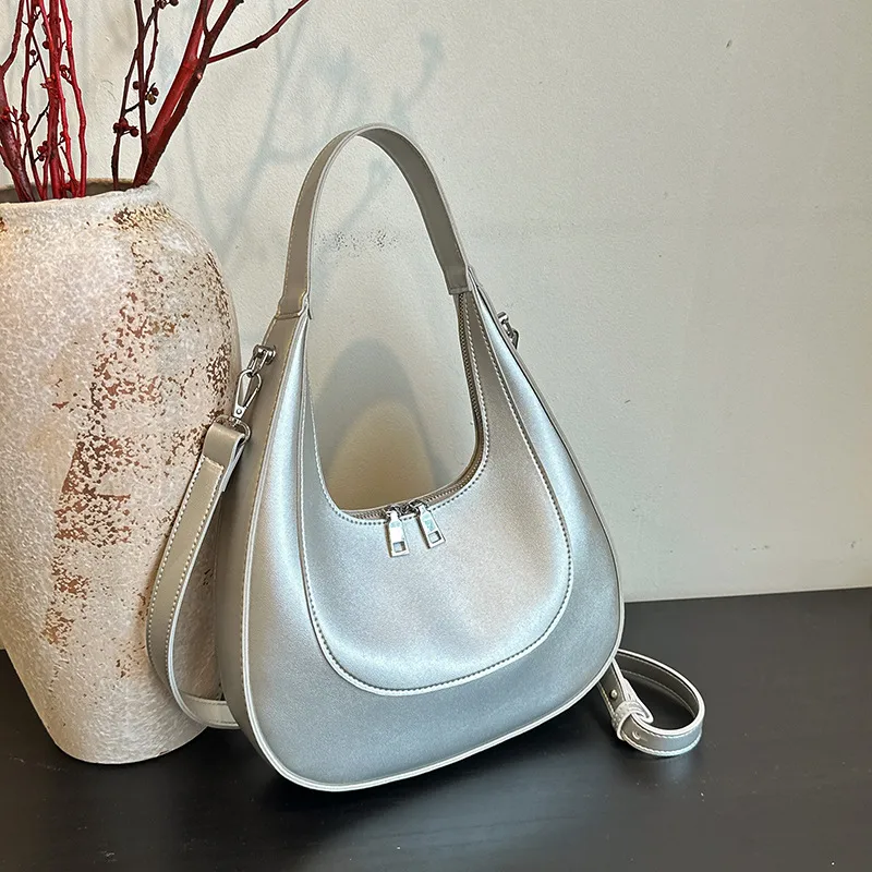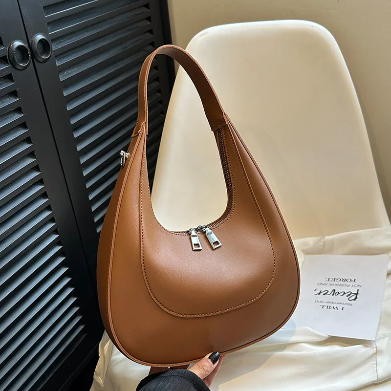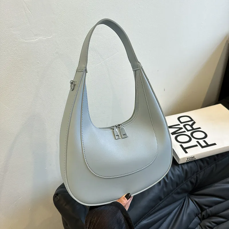 Wholesale Women's Pu Leather Solid Color Streetwear Dumpling Shape Zipper Shoulder Bag Underarm Bag