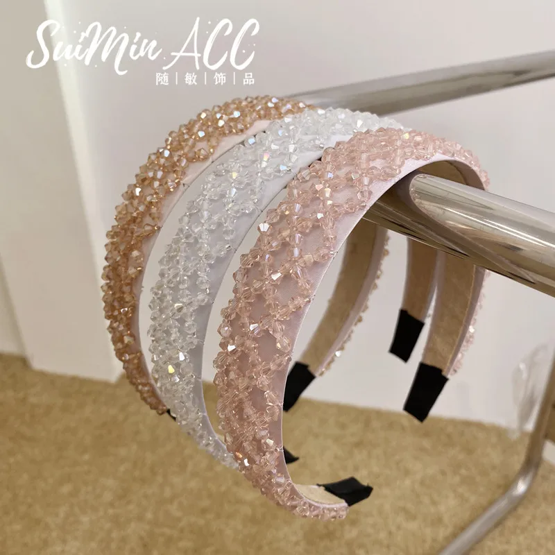 Wholesale korean fashion crystal beaded headband retro hand-woven wide-brimmed headband new fashion hair bundle headband nhsm237089