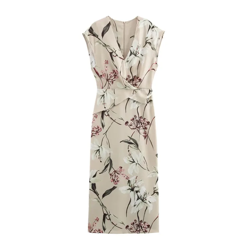 Wholesale Women's Sheath Dress Casual Elegant Streetwear V Neck Sleeveless Printing Midi Dress Holiday Banquet Selfie