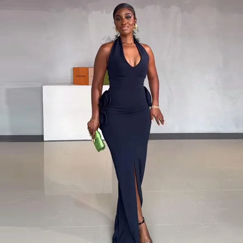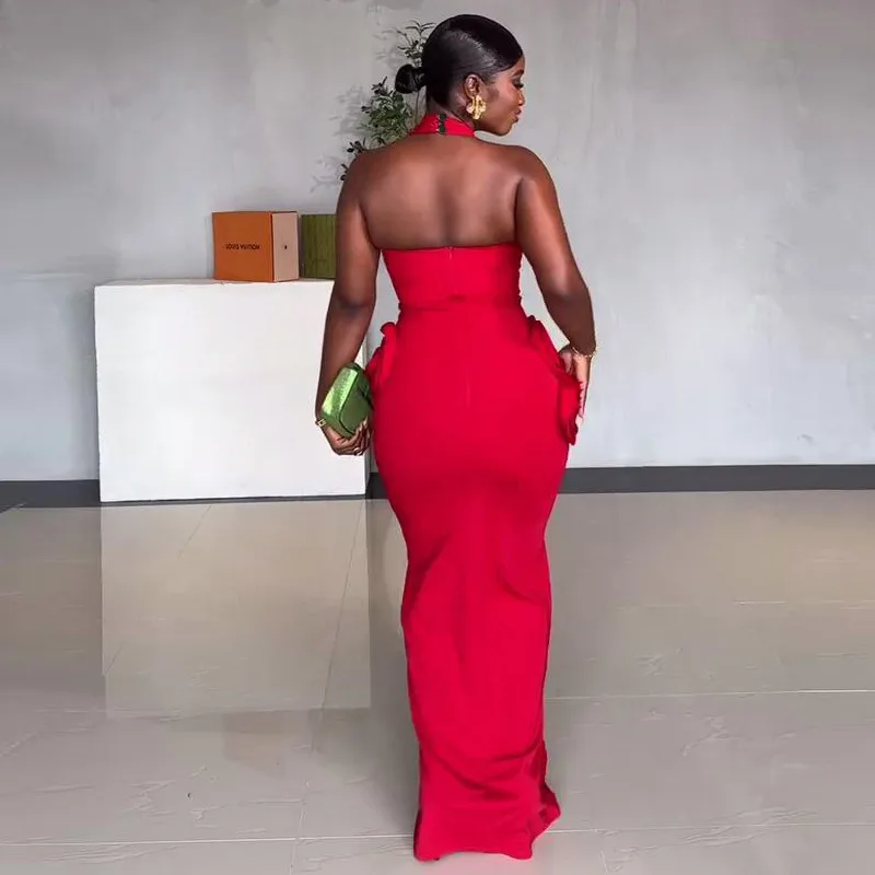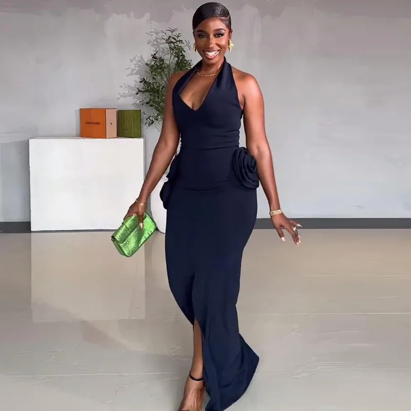 Wholesale Women's Sheath Dress Elegant Halter Neck Sleeveless Flower Maxi Long Dress Banquet