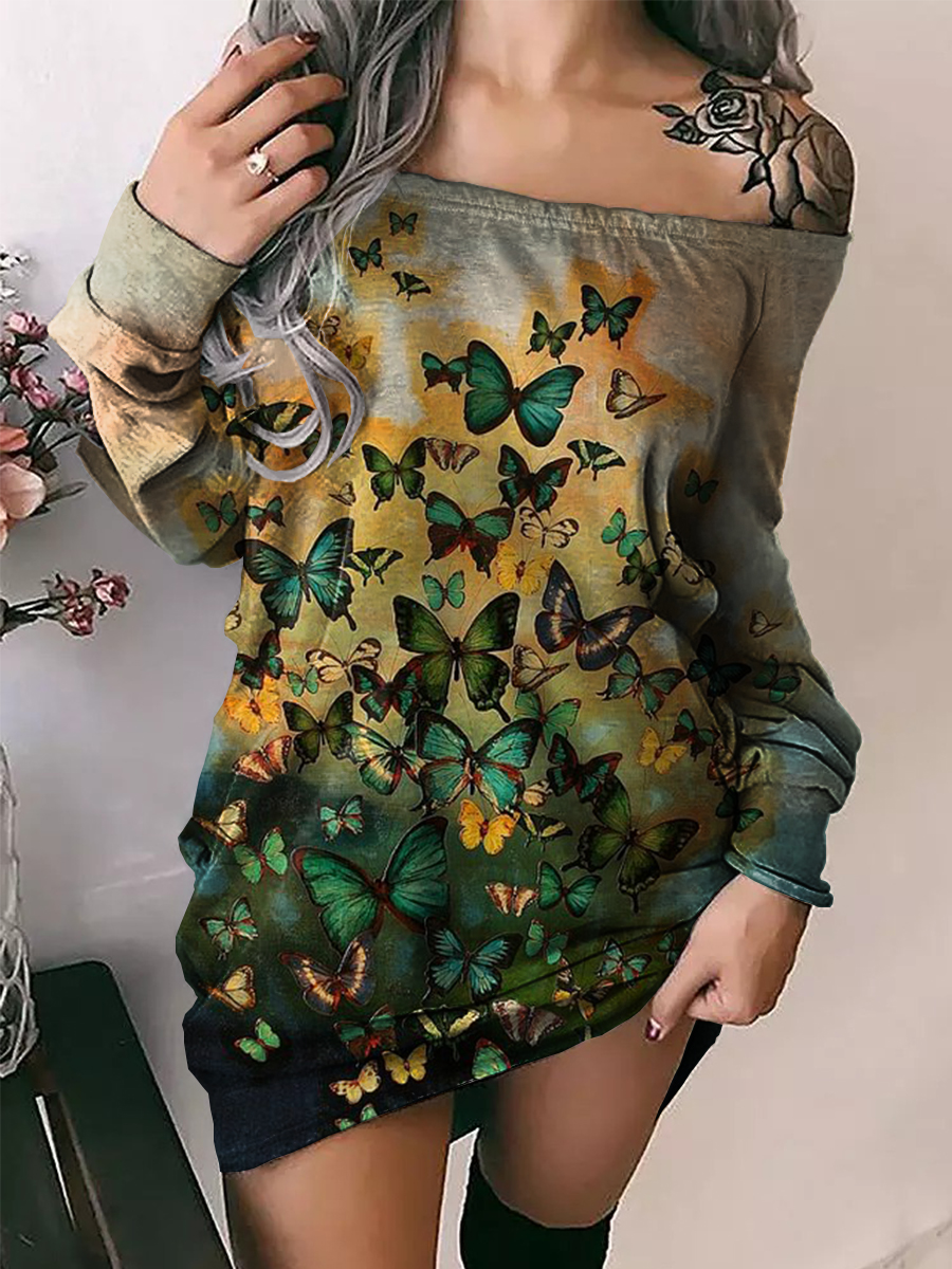 Women's Sheath Dress Elegant Round Neck Pleated Long Sleeve Stripe Above Knee Daily