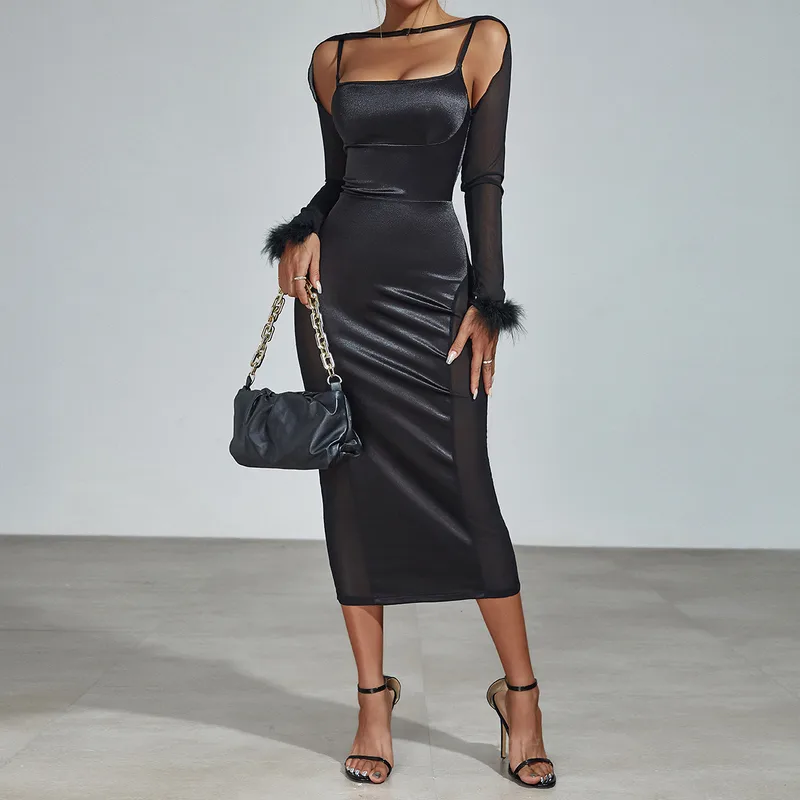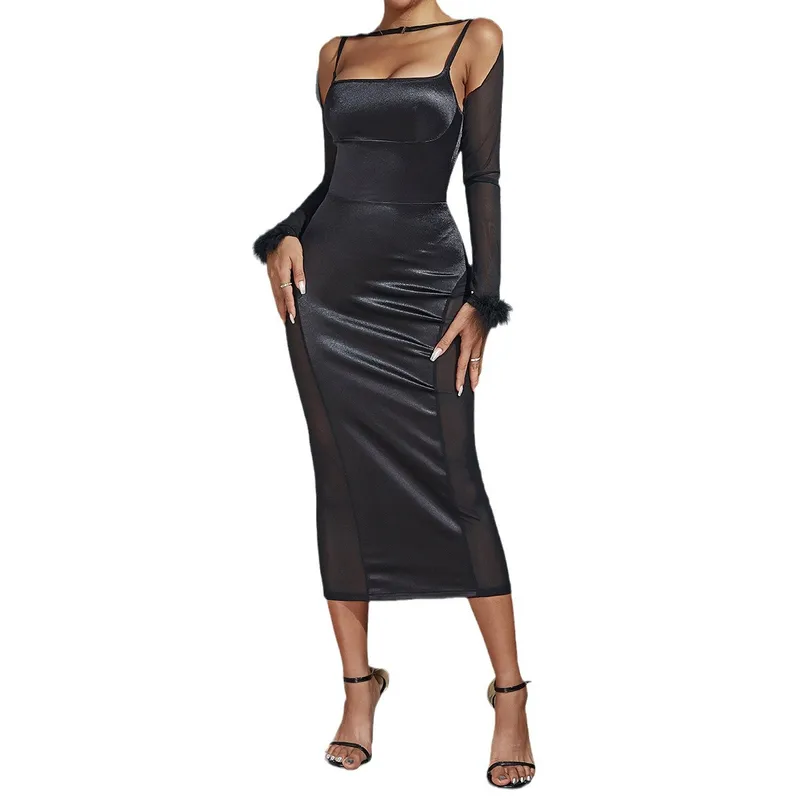 Wholesale Women's Sheath Dress Elegant Sexy Strap Backless Long Sleeve Solid Color Midi Dress Holiday