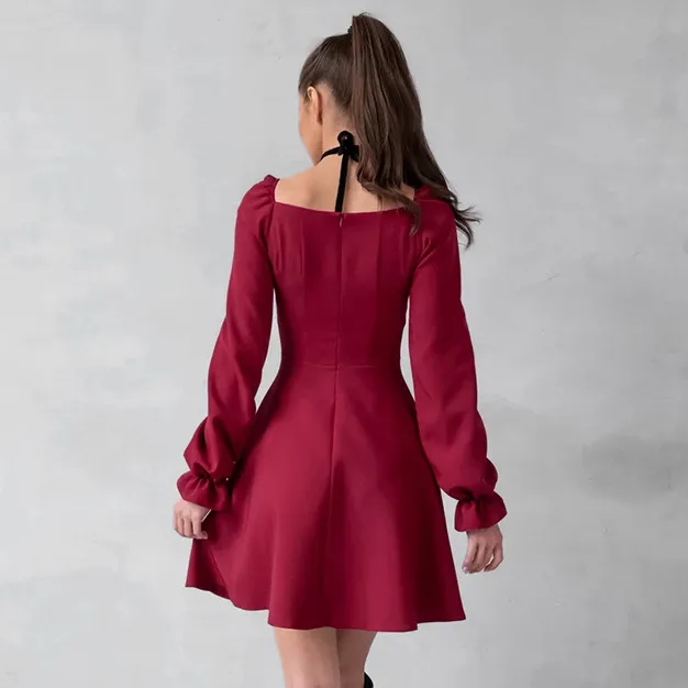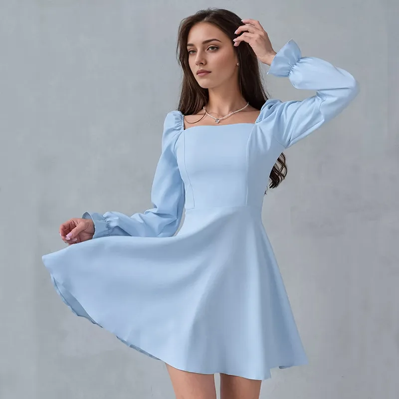 Wholesale Women's Sheath Dress Elegant Square Neck Long Sleeve Solid Color Above Knee Casual Holiday Daily
