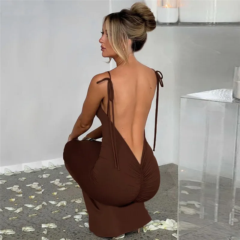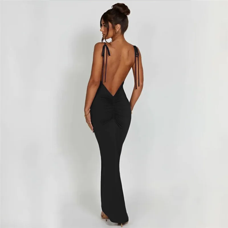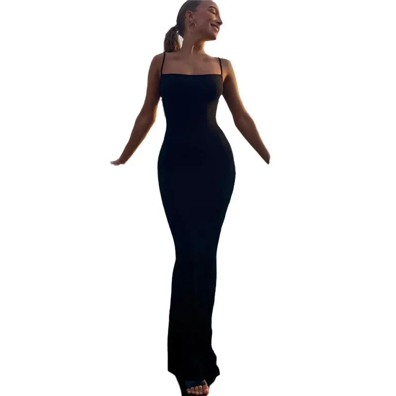 Wholesale Women's Sheath Dress Sexy Square Neck Backless Sleeveless Solid Color Maxi Long Dress Cocktail Party