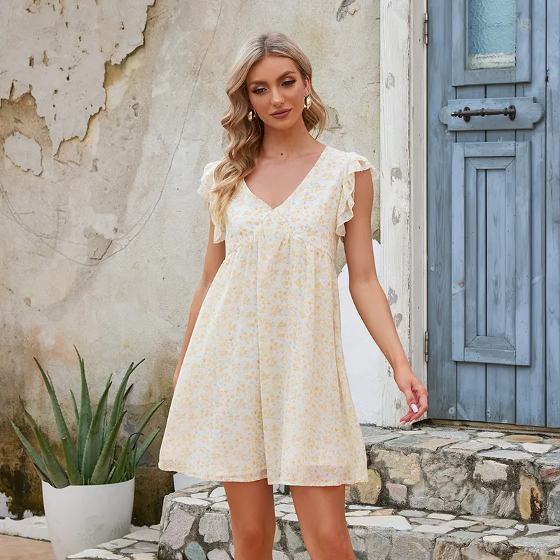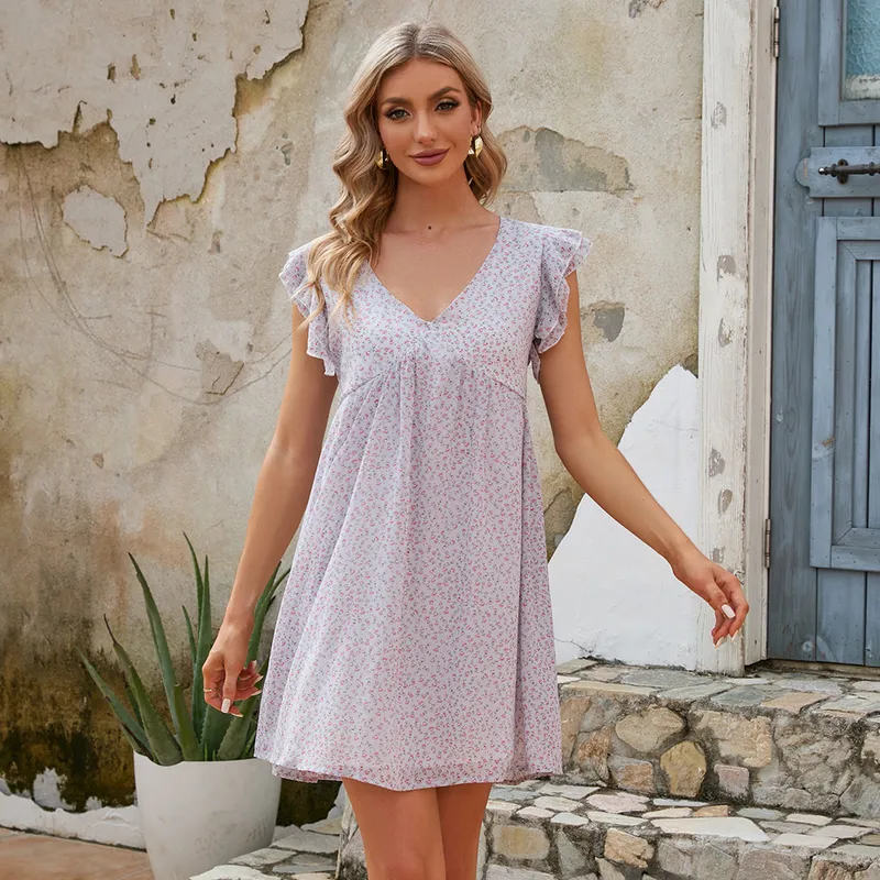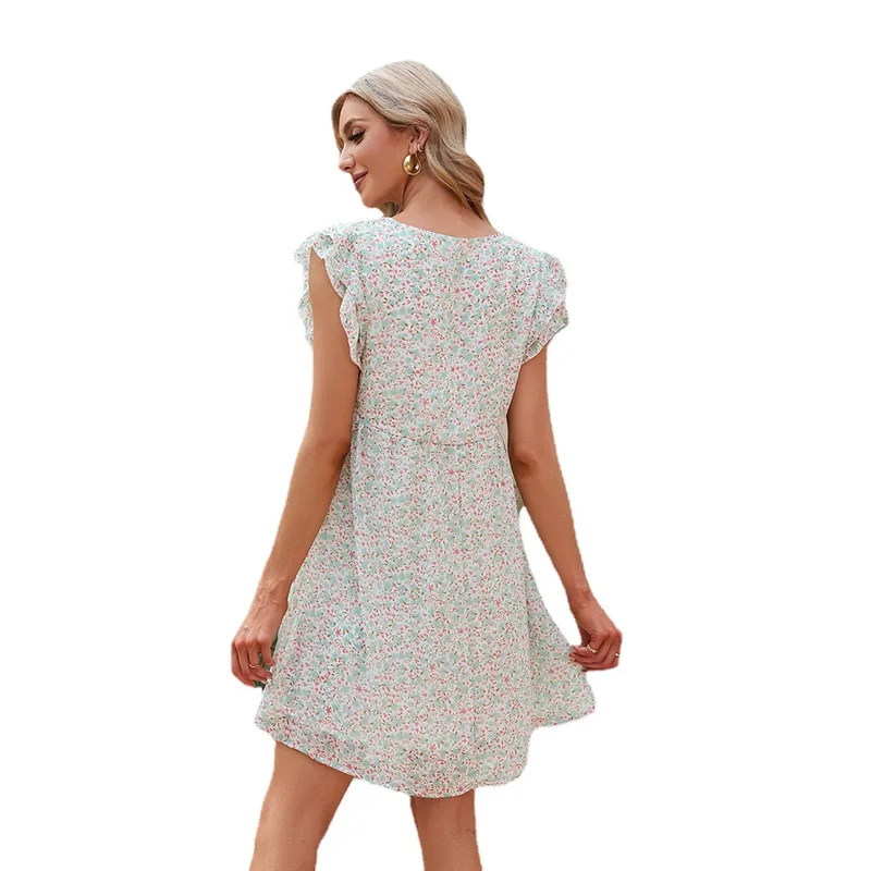 Wholesale Women's Sheath Dress Simple Style Classic Style V Neck Ruffles Short Sleeve Floral Above Knee Holiday