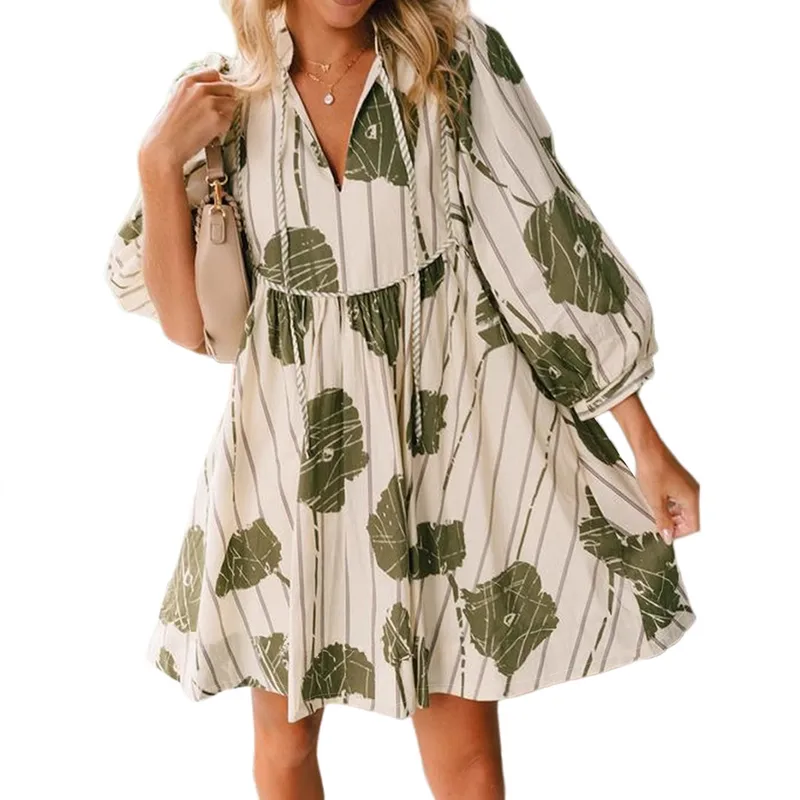Wholesale Women's Sheath Dress Simple Style V Neck Long Sleeve Plant Above Knee Holiday