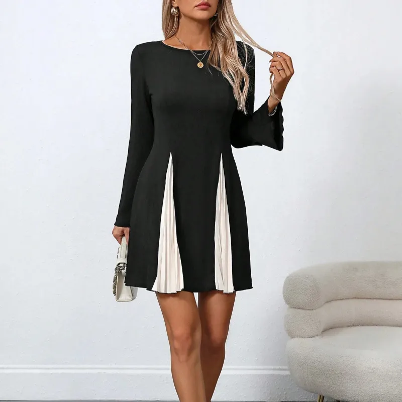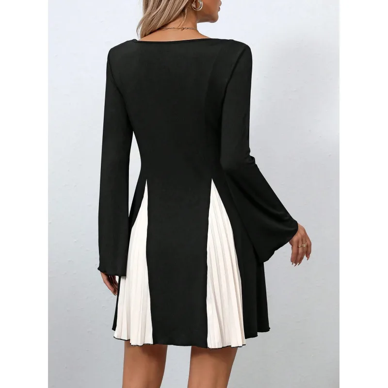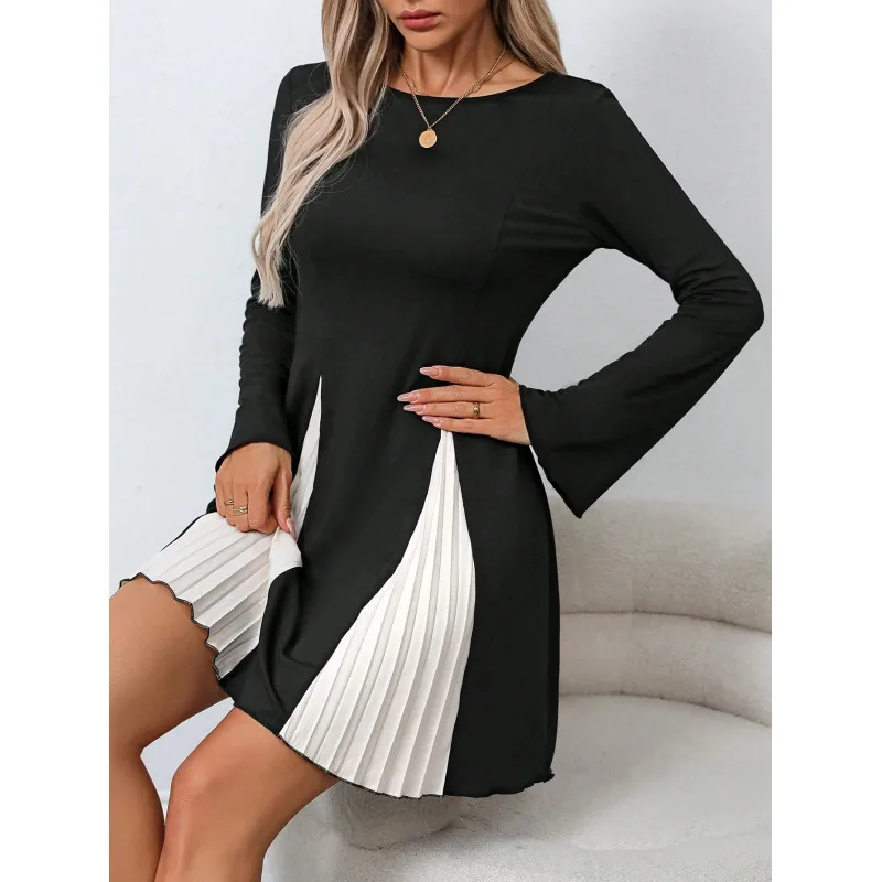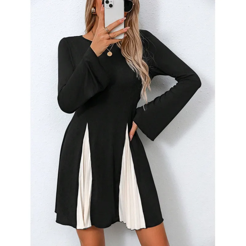 Wholesale Women's Sheath Dress Streetwear Round Neck Long Sleeve Color Block Above Knee Holiday
