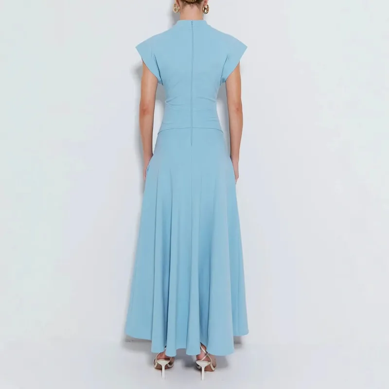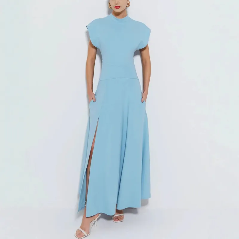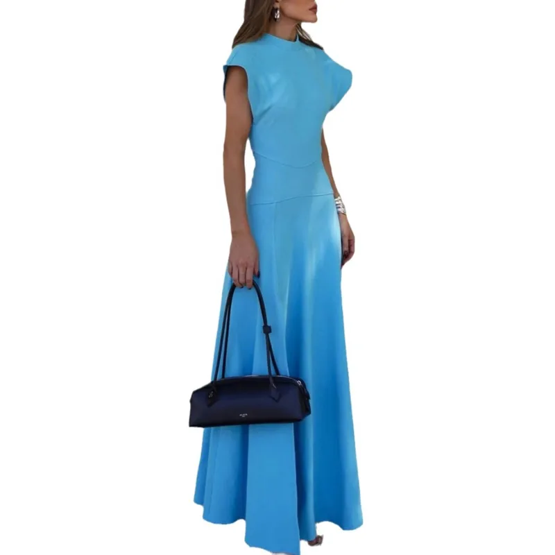 Wholesale Women's Sheath Dress Vacation Simple Style Round Neck Short Sleeve Solid Color Maxi Long Dress Holiday