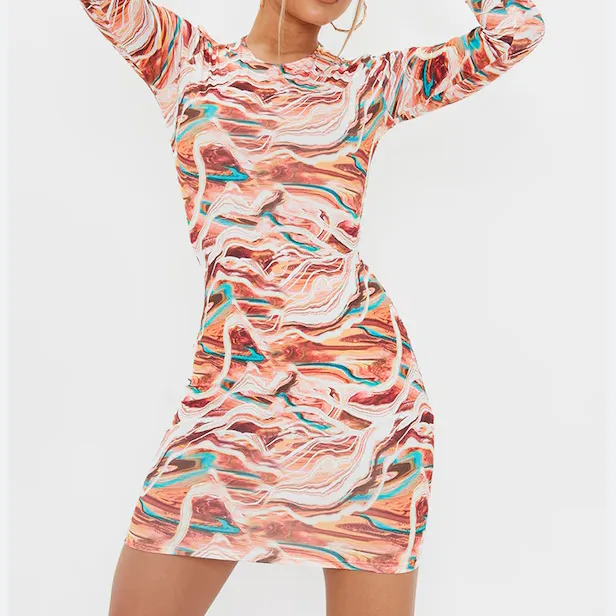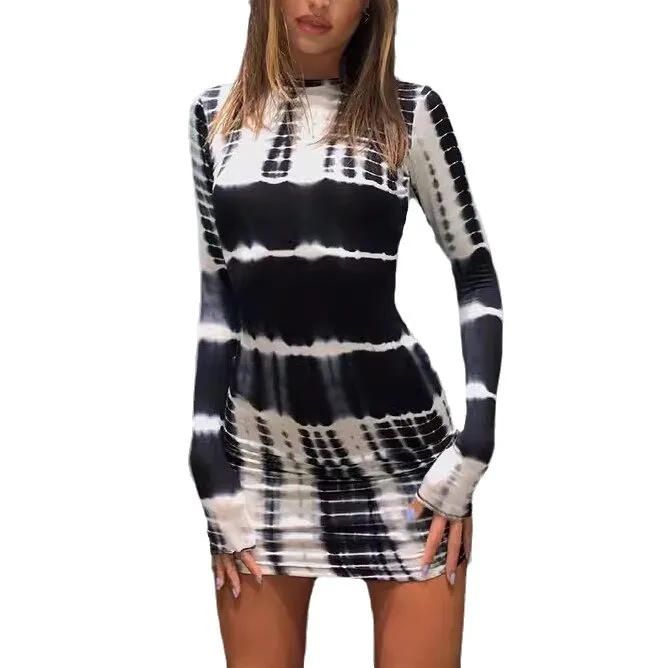 Wholesale Women's Sheath Dress Vintage Style Bohemian Streetwear Round Neck Long Sleeve 3D Print Above Knee Holiday Banquet Selfie