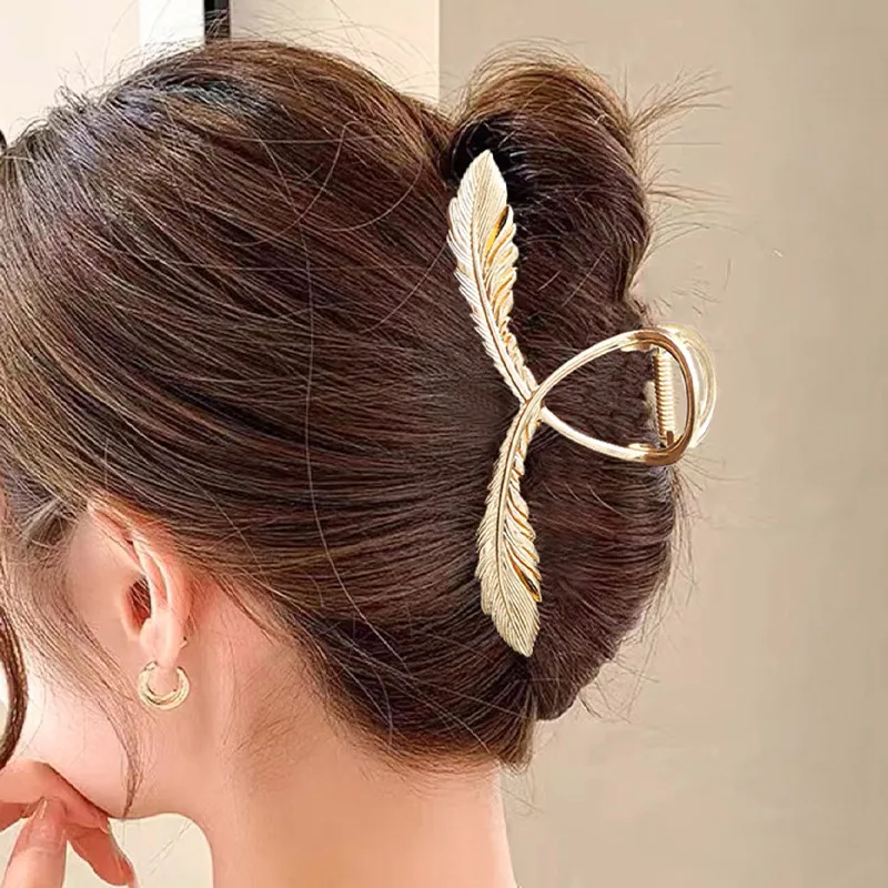 Wholesale women's simple style feather metal hair claws