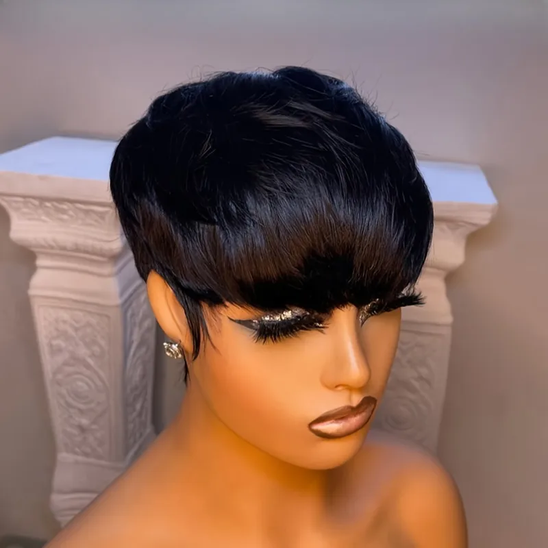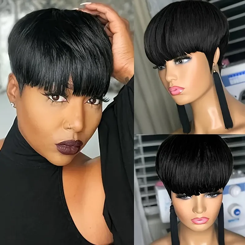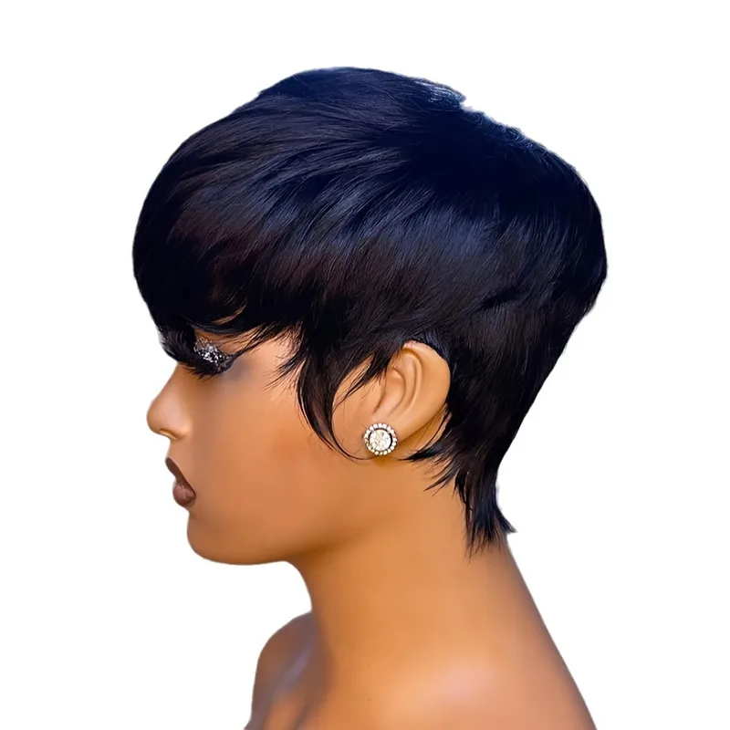 Wholesale Women's Simple Style Masquerade Carnival Street Real Hair Homogeneous and Oblique Short Straight Hair Wigs