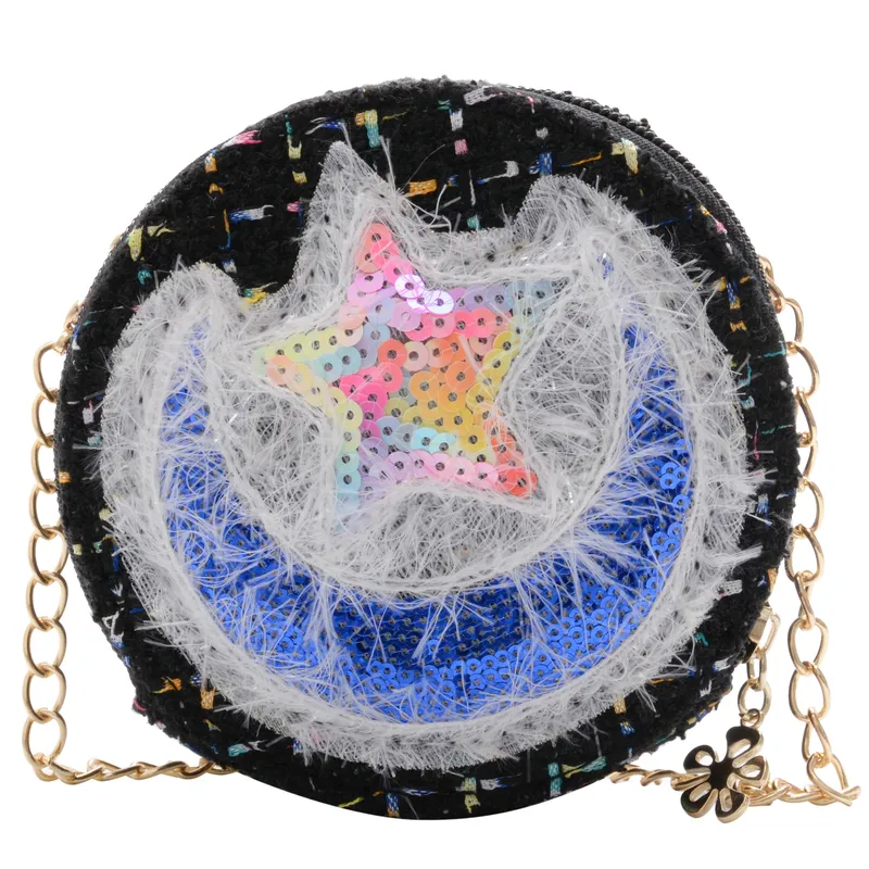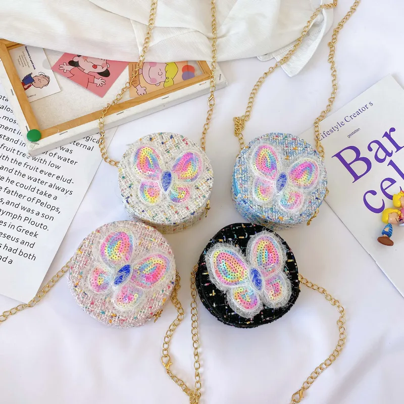 Women's Small Cotton And Linen Heart Shape Butterfly Cute Sequins Round Zipper Crossbody Bag