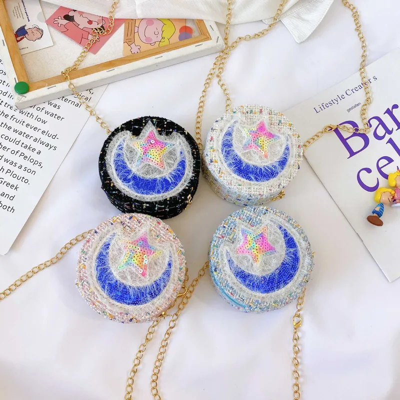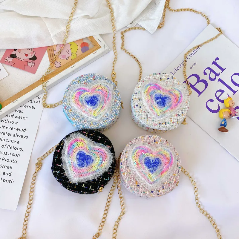 Wholesale Women's Small cotton and linen Heart Shape Butterfly Cute Sequins Round Zipper Crossbody Bag