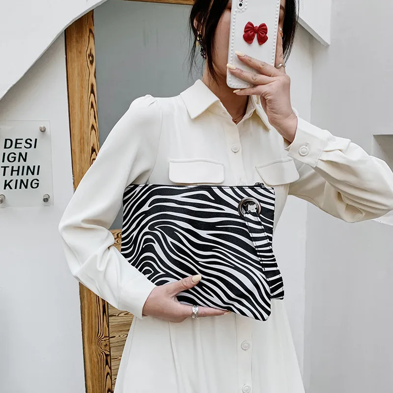 Wholesale Women's Small Pu Leather Cows Zebra Leopard Vintage Style Classic Style Square Zipper Clutch Bag