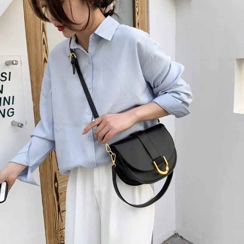 Wholesale women's small pu leather solid color elegant semicircle magnetic buckle crossbody bag