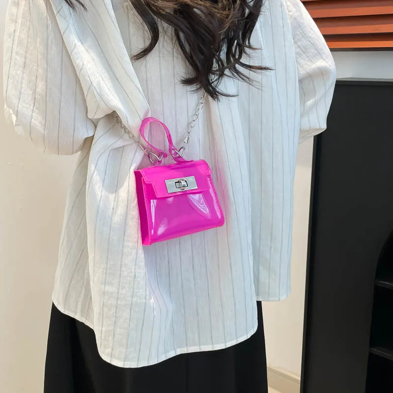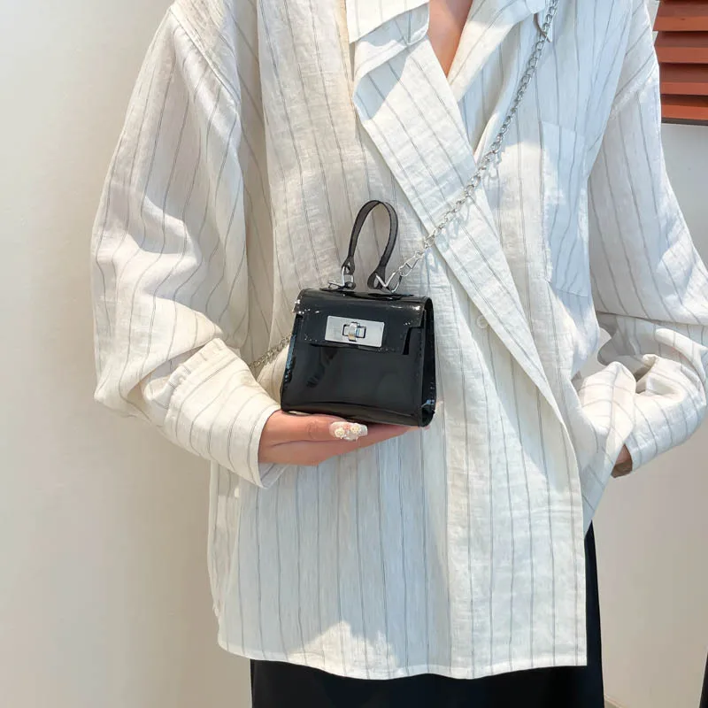 Wholesale Women's Small PVC Solid Color Streetwear Square Flip Cover Lock clasp