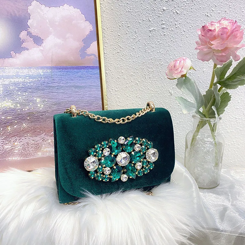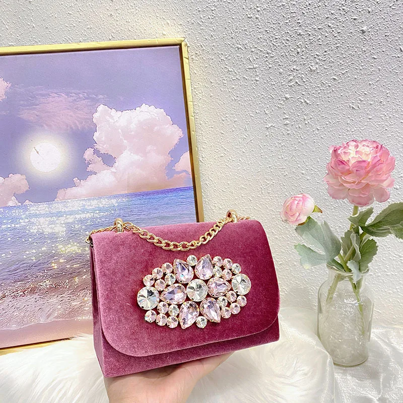 Wholesale Women's Small velvet Solid Color Streetwear Square Magnetic Buckle Crossbody Bag Evening Bag