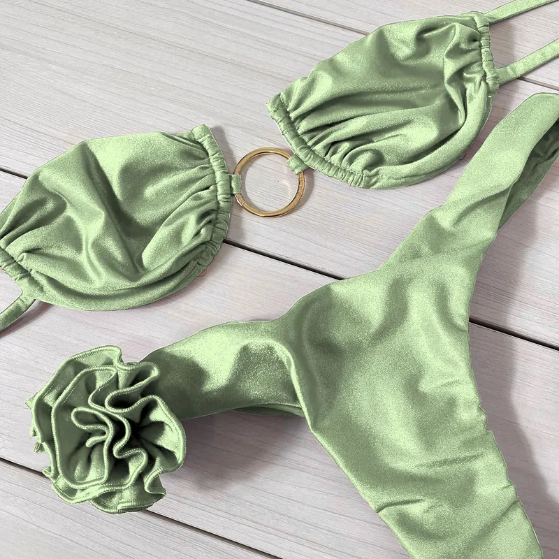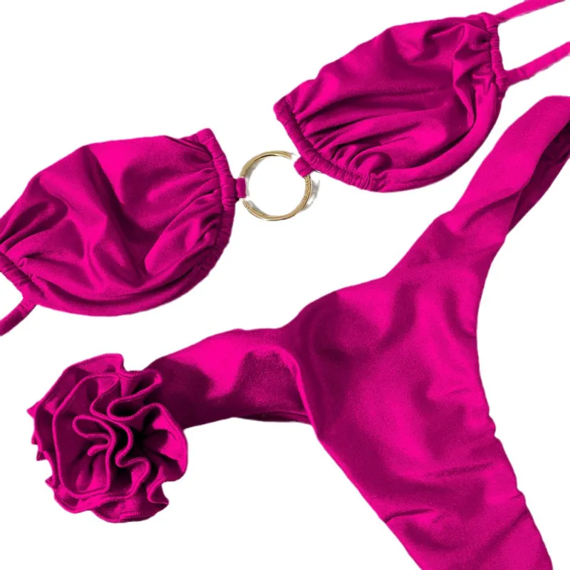 Wholesale Women's Solid Color Flower 2 Pieces Set Bikinis Swimwear