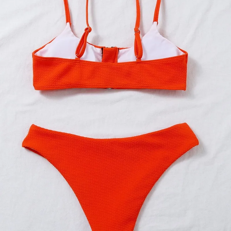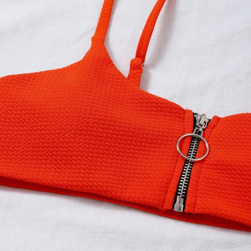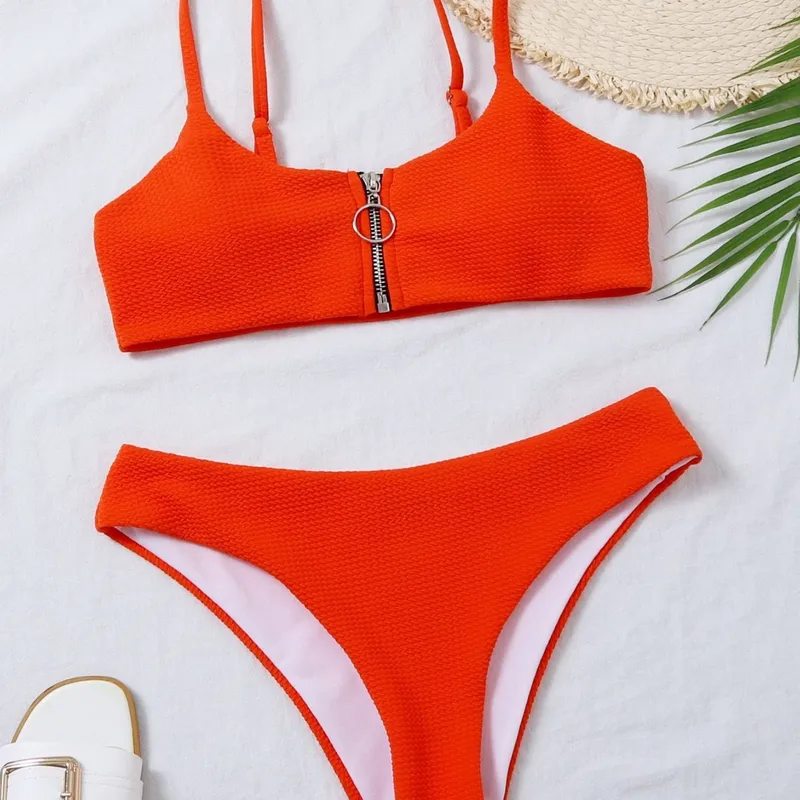 Wholesale Women's Solid Color Zipper 2 Pieces Set Swimwear