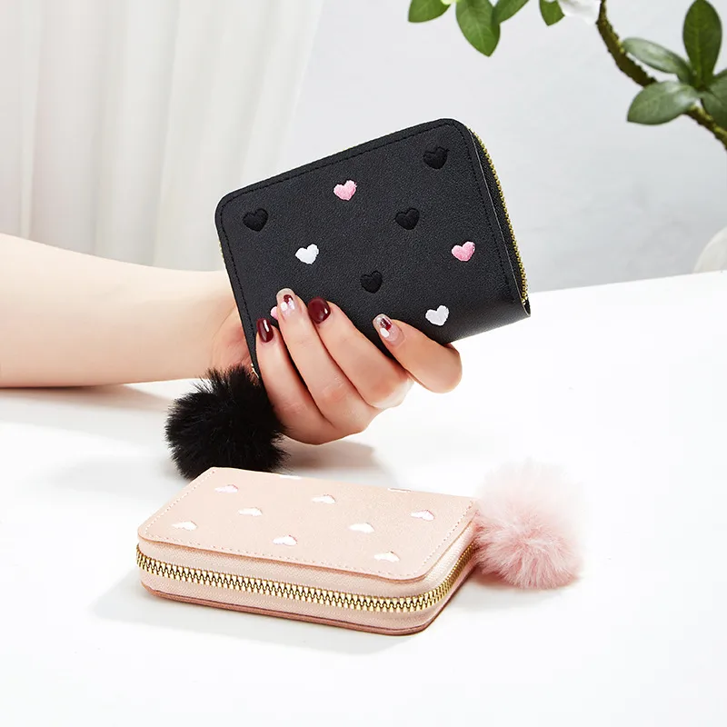Wholesale Women's Square Heart Shape Pu Leather Zipper Wallets