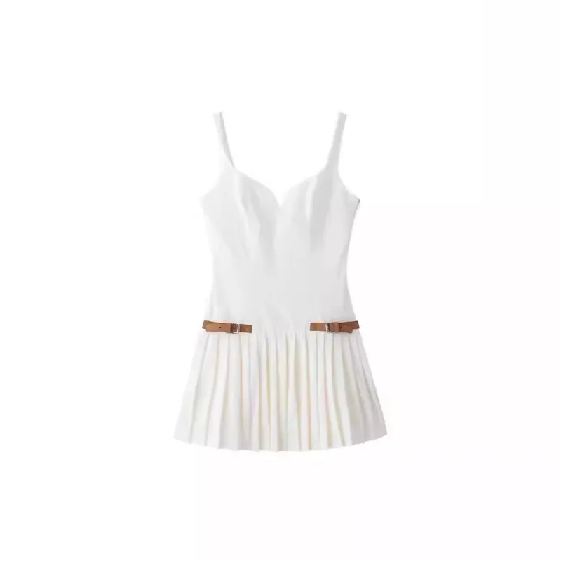 Wholesale Women's Strap Dress Elegant Sexy V Neck Strap Belt Sleeveless Solid Color Short Mini Dress Casual Holiday