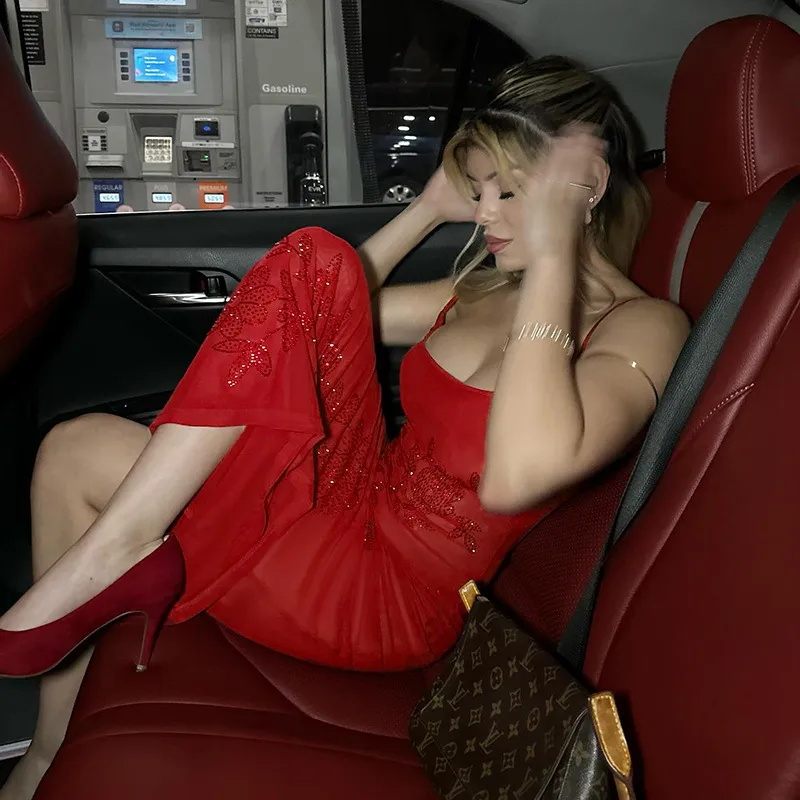 Women's Strap Dress Elegant Strap Diamond Sleeveless Flower Maxi Long Dress Holiday Banquet