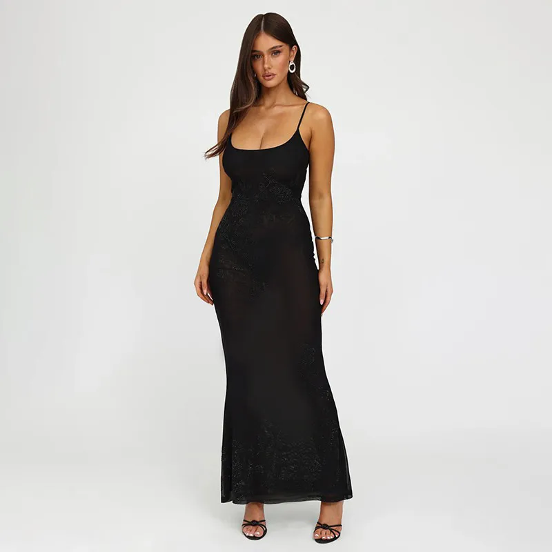 Wholesale Women's Strap Dress Elegant Strap Diamond Sleeveless Flower Maxi Long Dress Holiday Banquet