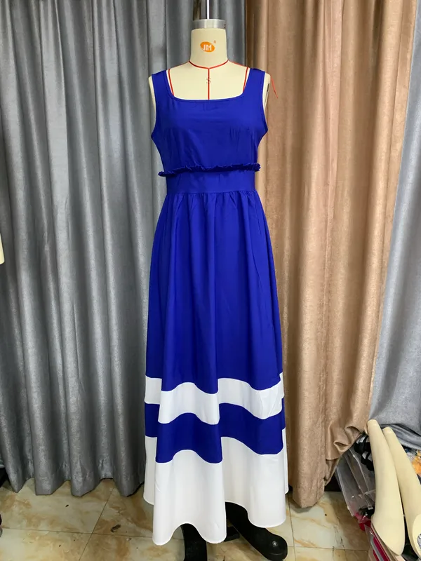 Wholesale Women's Strap Dress Simple Style Square Neck Sleeveless Color Block Midi Dress Holiday Daily
