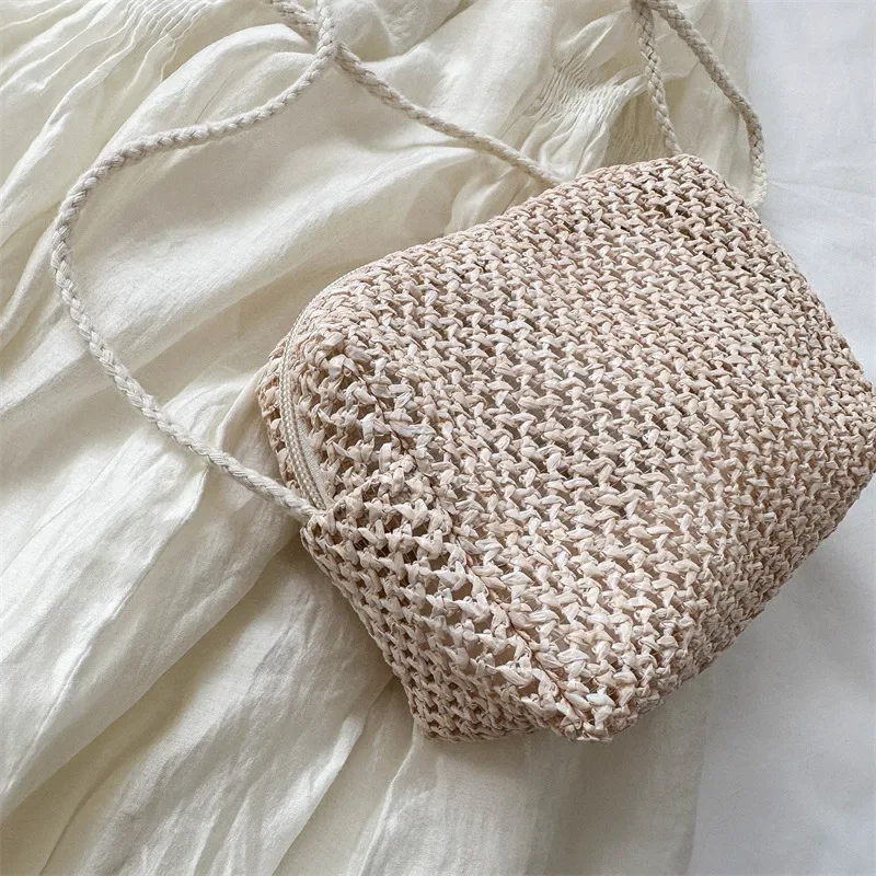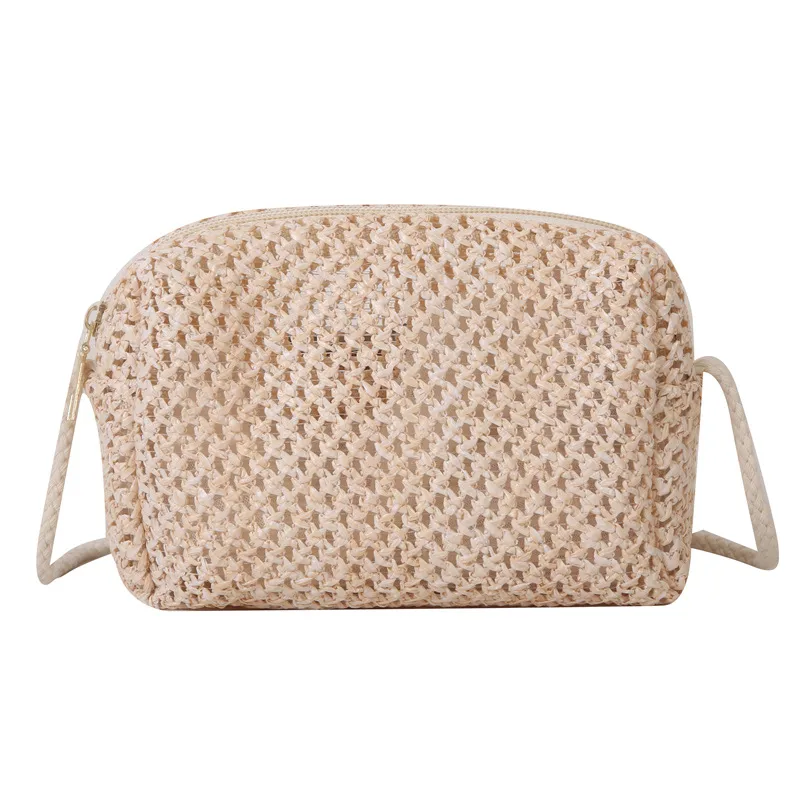 Wholesale Women's Straw Grid Elegant Basic Square Zipper Straw Bag