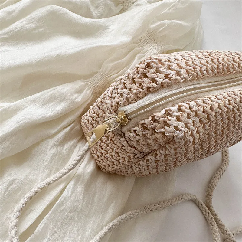 Women's Straw Grid Elegant Basic Square Zipper Straw Bag