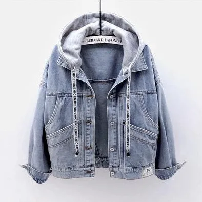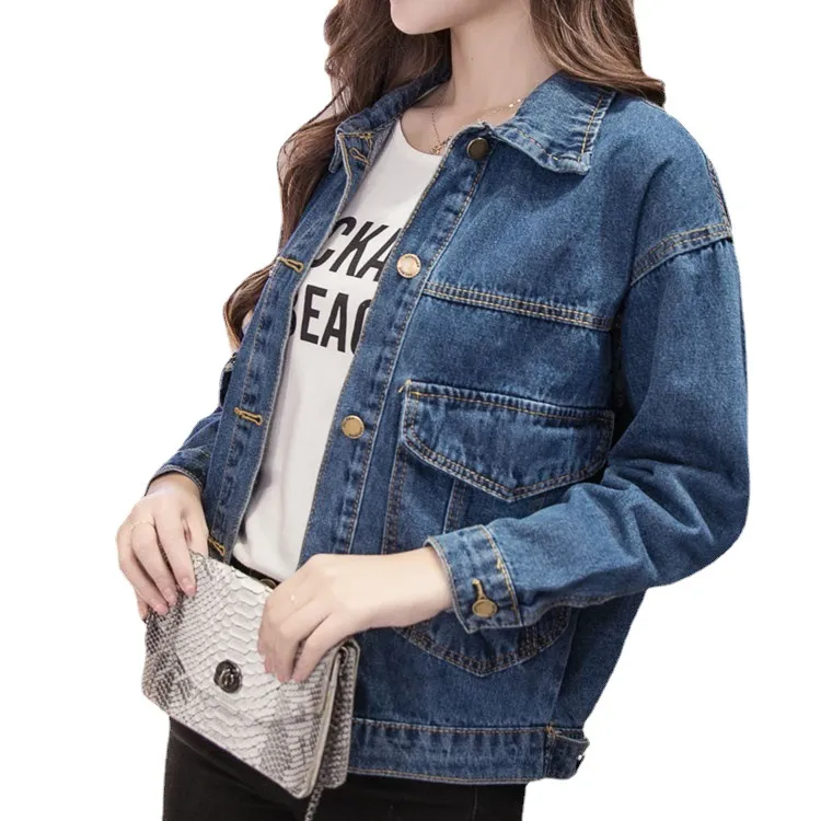 Wholesale Women's Streetwear Color Block Printing Single Breasted Coat Denim Jacket