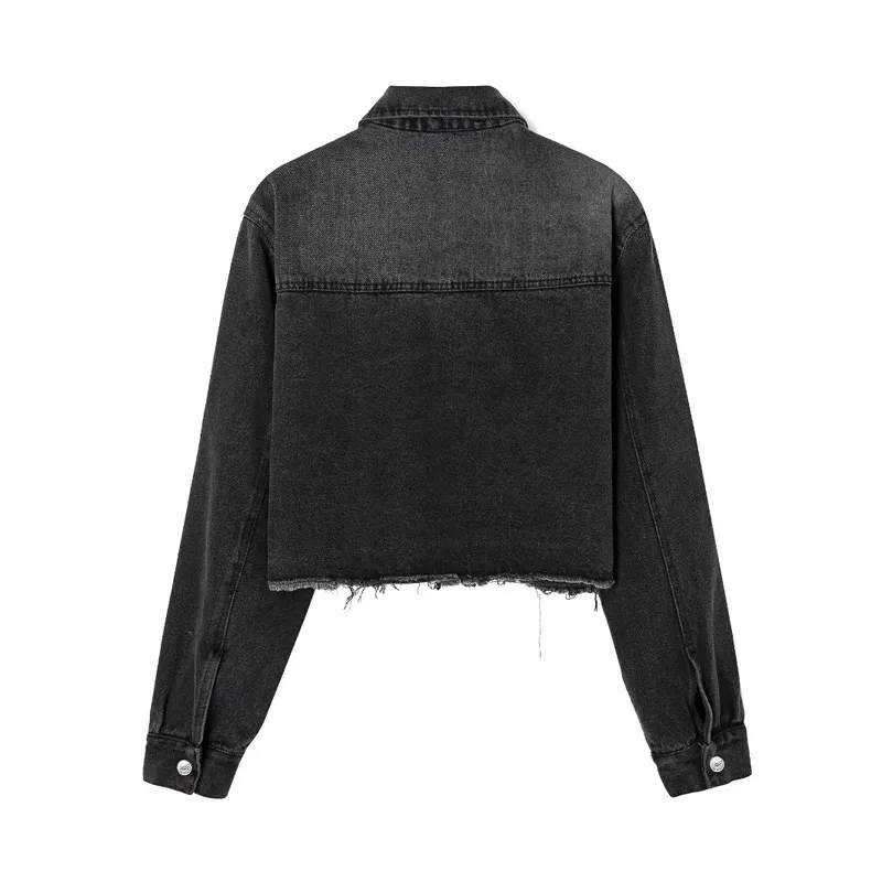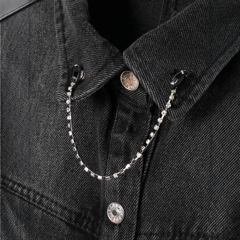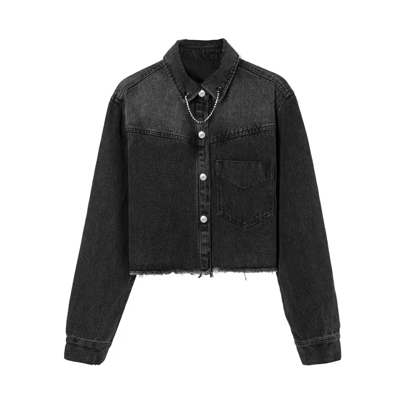 Wholesale Women's Streetwear Gradient Color Chain Single Breasted Denim Jacket