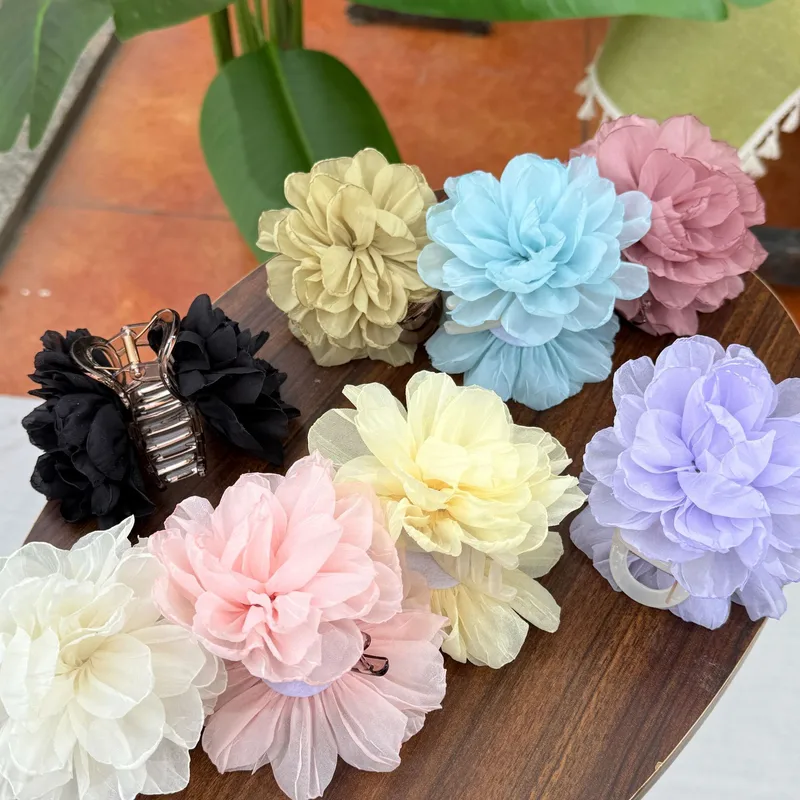 Wholesale Women's Sweet Flower Gauze Hair Claws