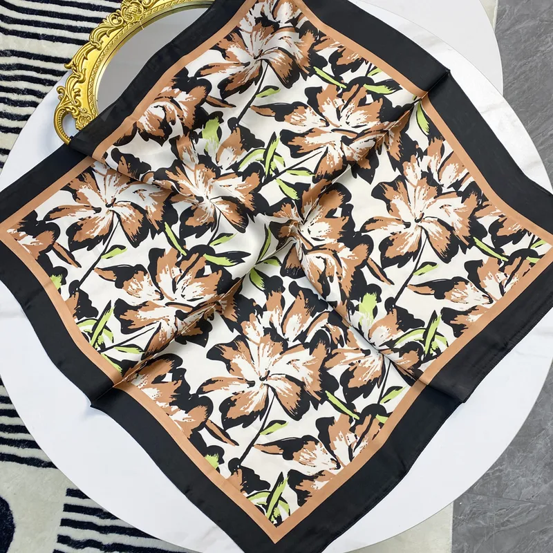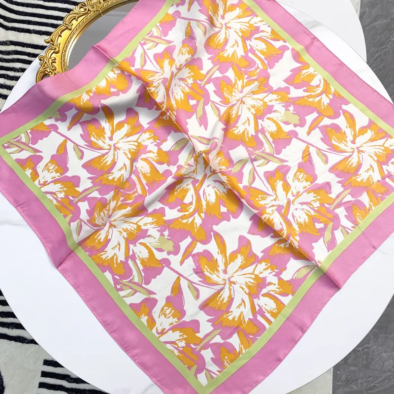 Women's Sweet Flower South Korean Satin Silk Scarves