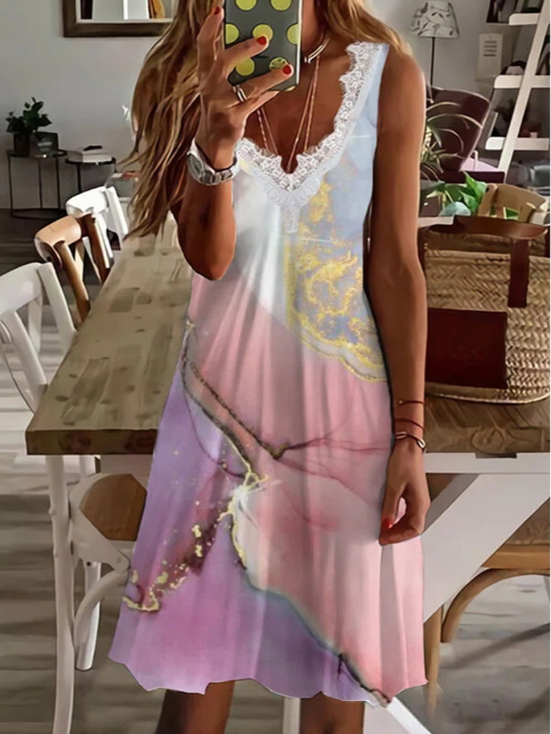 Women's Swing Dress Elegant Standing Collar Pleated Long Sleeve Flower Midi Dress Holiday